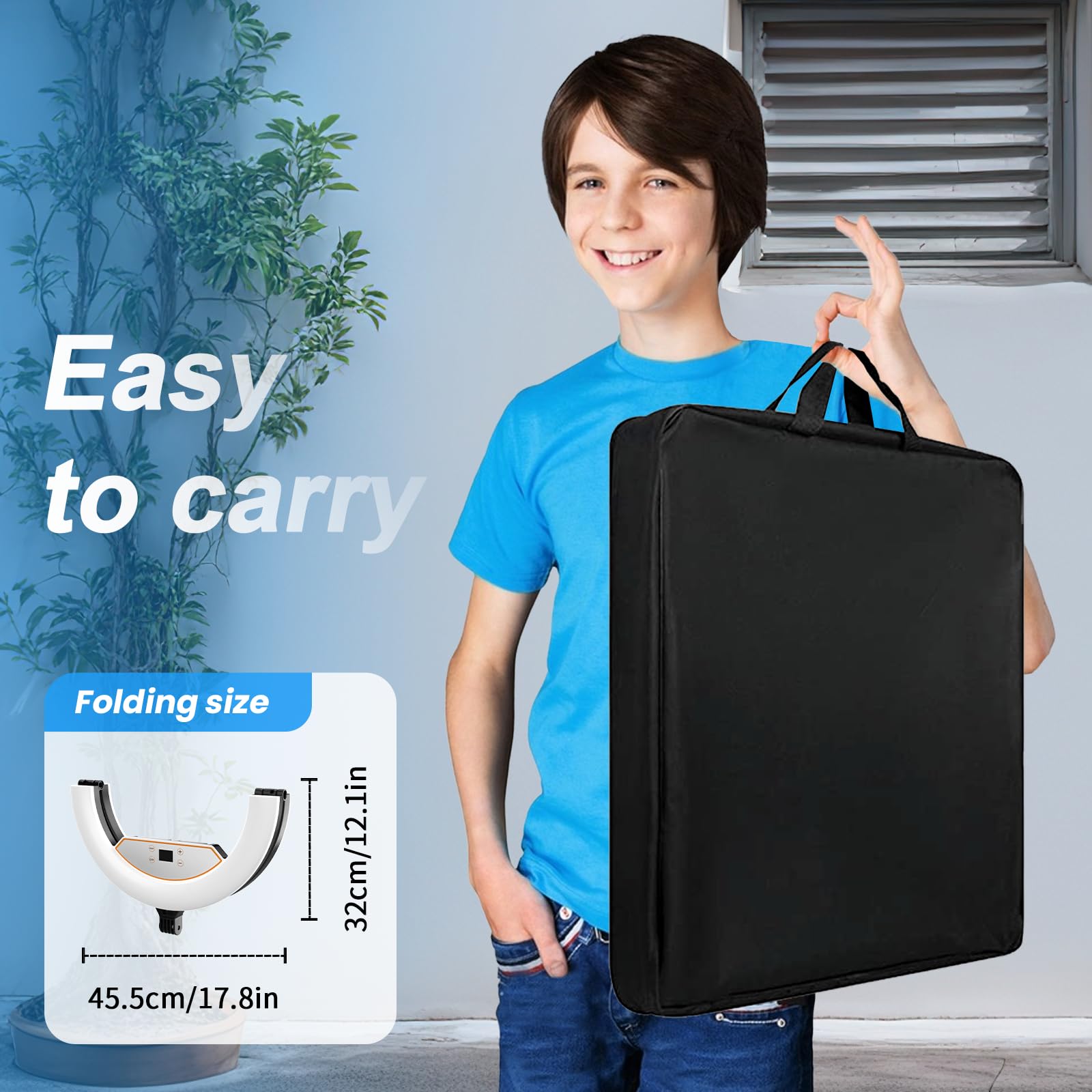 - 【LCD Display & Dimmable Ring Light】This large tablet ring light compatible with iPad and iPhone, features an LCD display that intuitively shows brightness and color temperature, making it easier to adjust to the desired lighting mode. The 18-inch ring light with a stand offers adjustable brightness from 1% to 100%, and customizable color temperature ranging from warm yellow to cool white (3000K-4500K-6500K). It allows users to fine-tune the optimal lighting for various scenarios, making it ideal for portrait photography, live streaming, and outdoor work lighting.You can choose the appropriate size ring light, brightness and color temperature according to your needs.