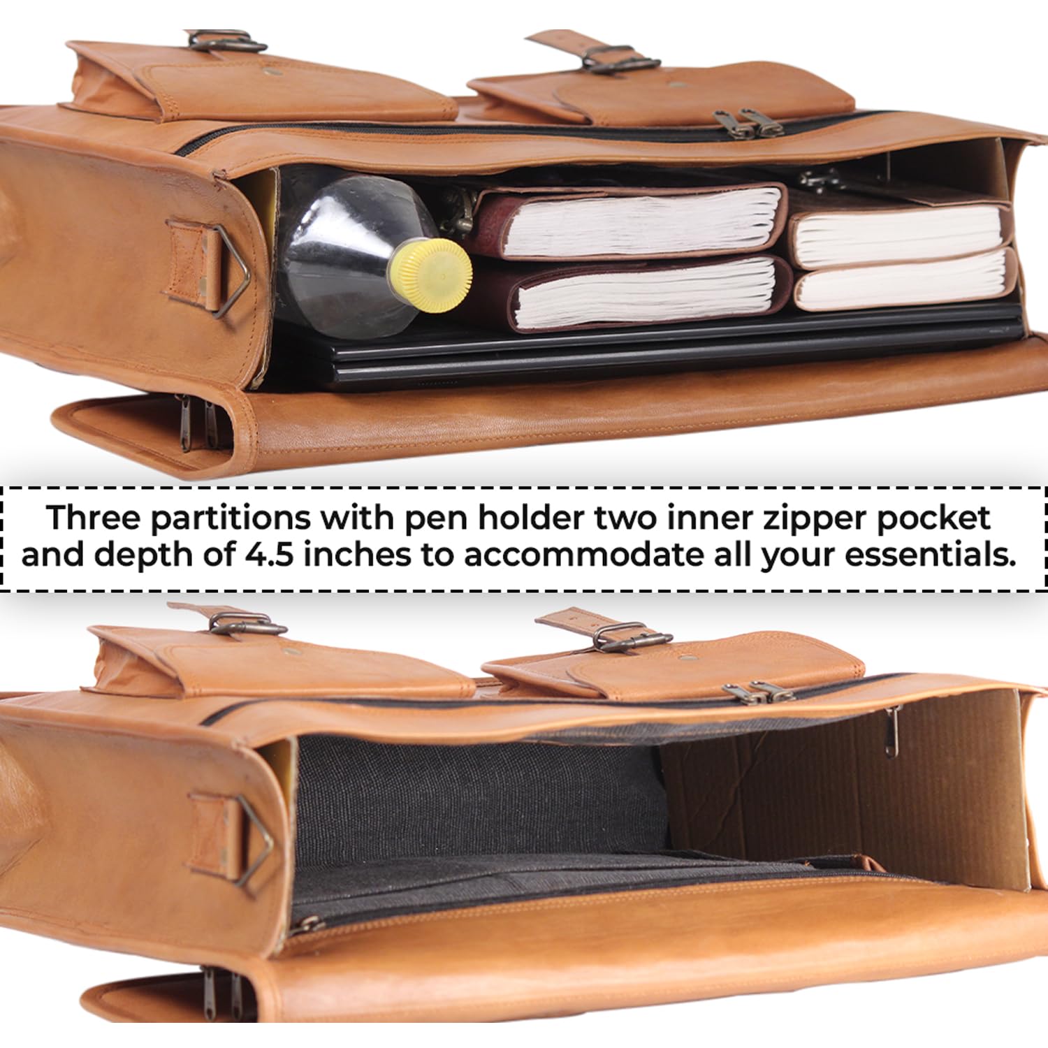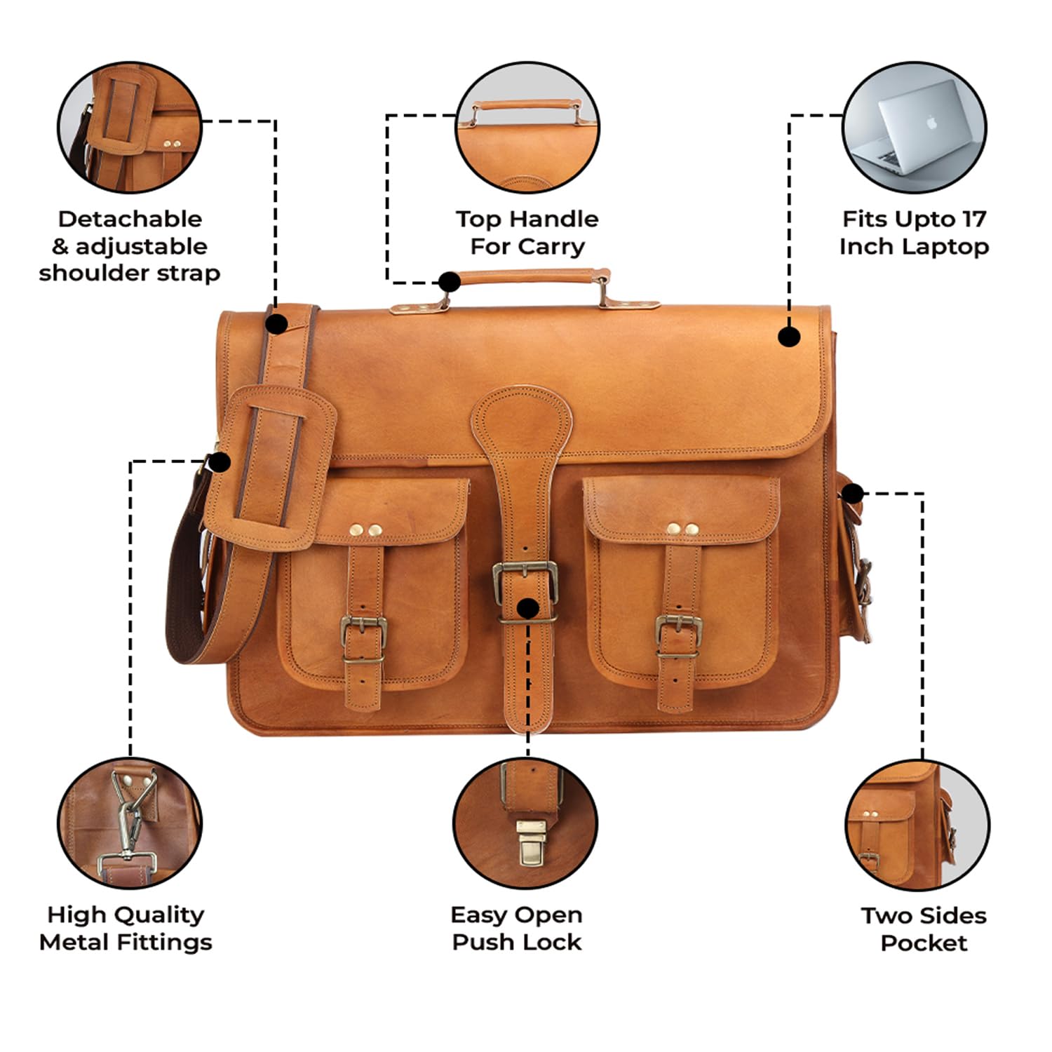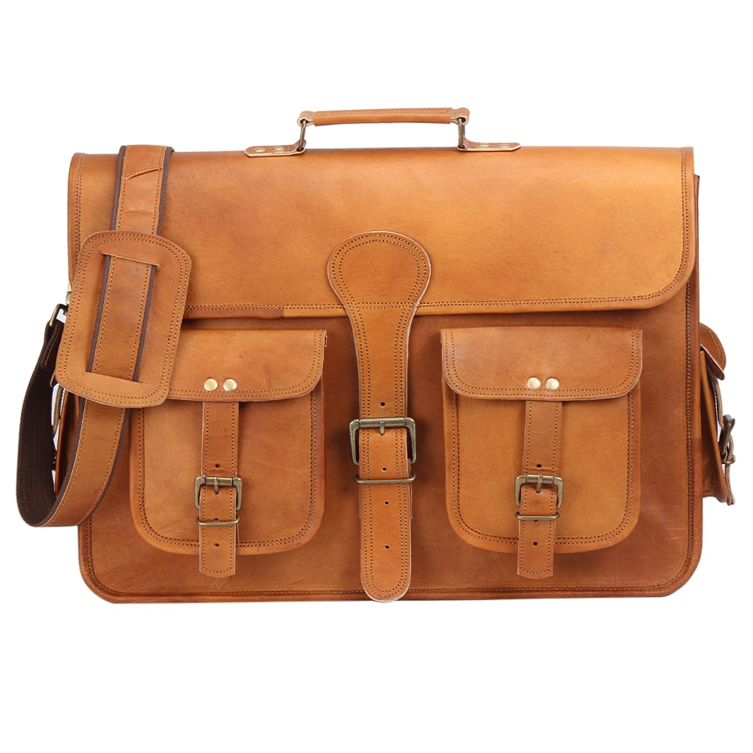 18 Inches Leather Laptop Bag for Men - Genuine Leather Briefcase, Vintage Look Messenger Bag (Tan)