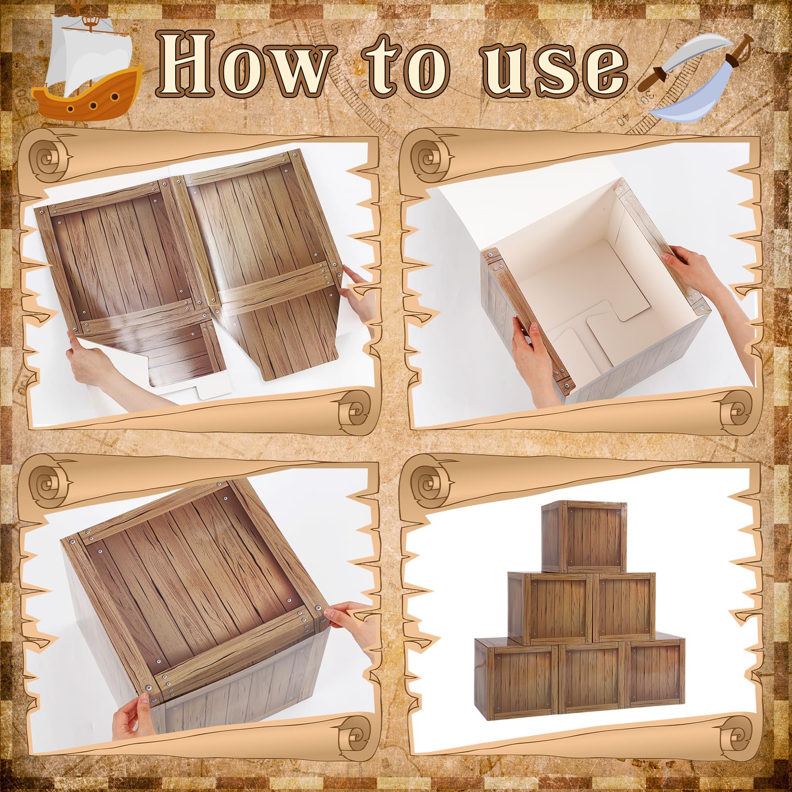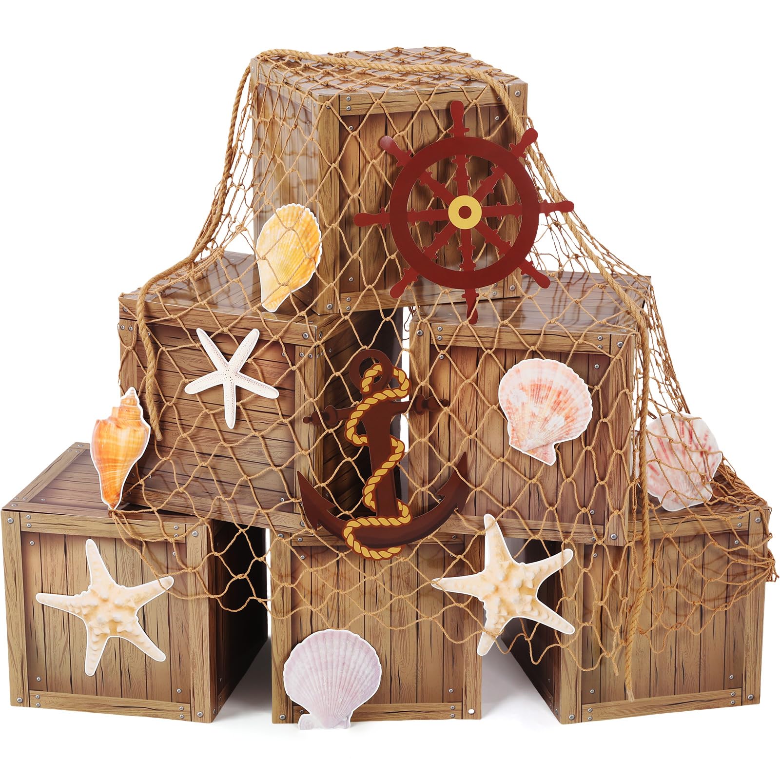 - Sufficient Quantity: the package includes 6 faux wooden crates, 10 cards, 1 fishing net, and 1 hemp rope; There's no risk of running out of supplies at your pirate or halloween party, making it easy to enjoy the party