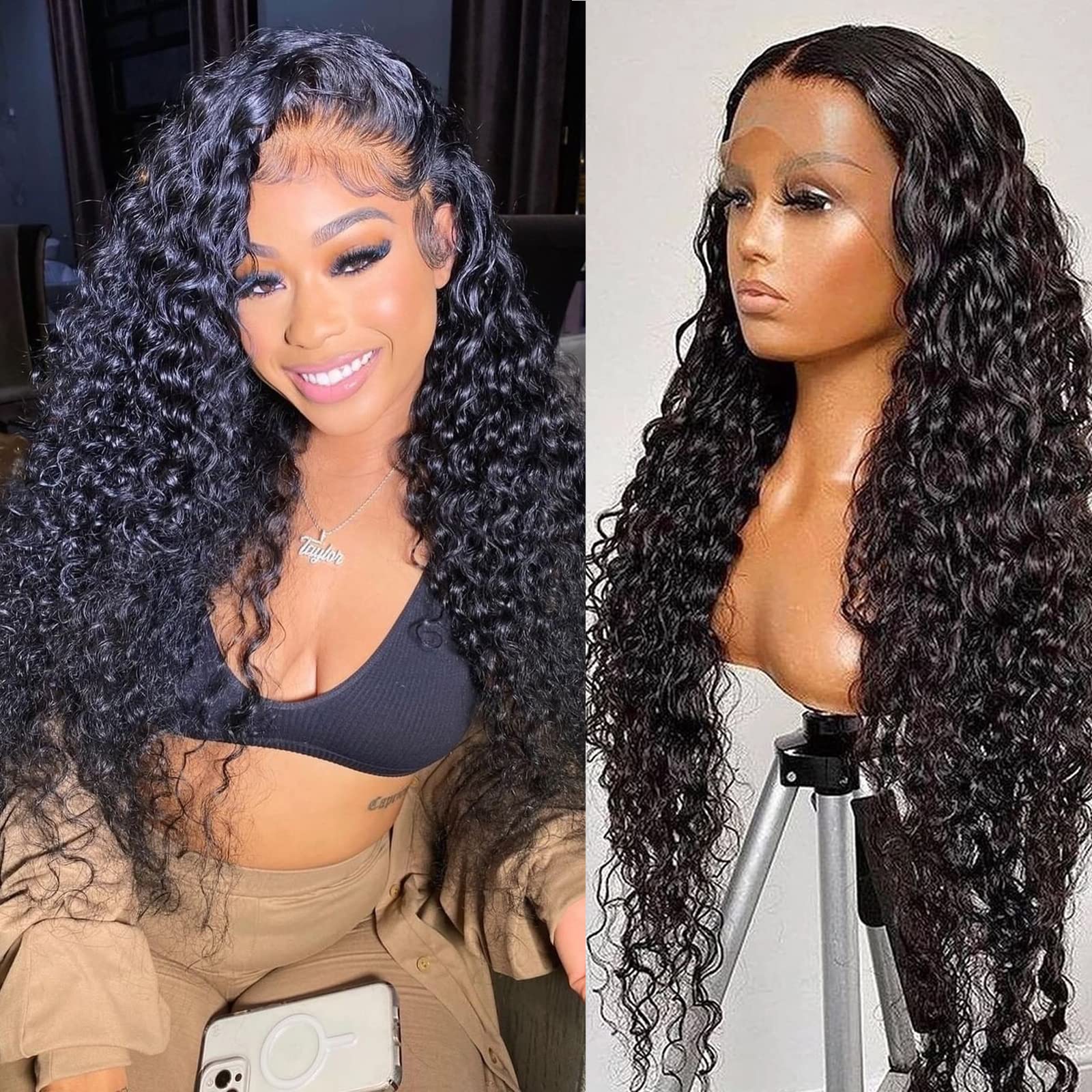 - 【Human Hair Wigs Material】13x6 HD Transparent Lace Front Wigs for Black Women, 180% Density Water Wave Wig, Full And Thick. 100% Unprocessed Brazilian Virgin Human Hair. Soft and Natural, Healthy and Vibrant, Comfortable Against Skin