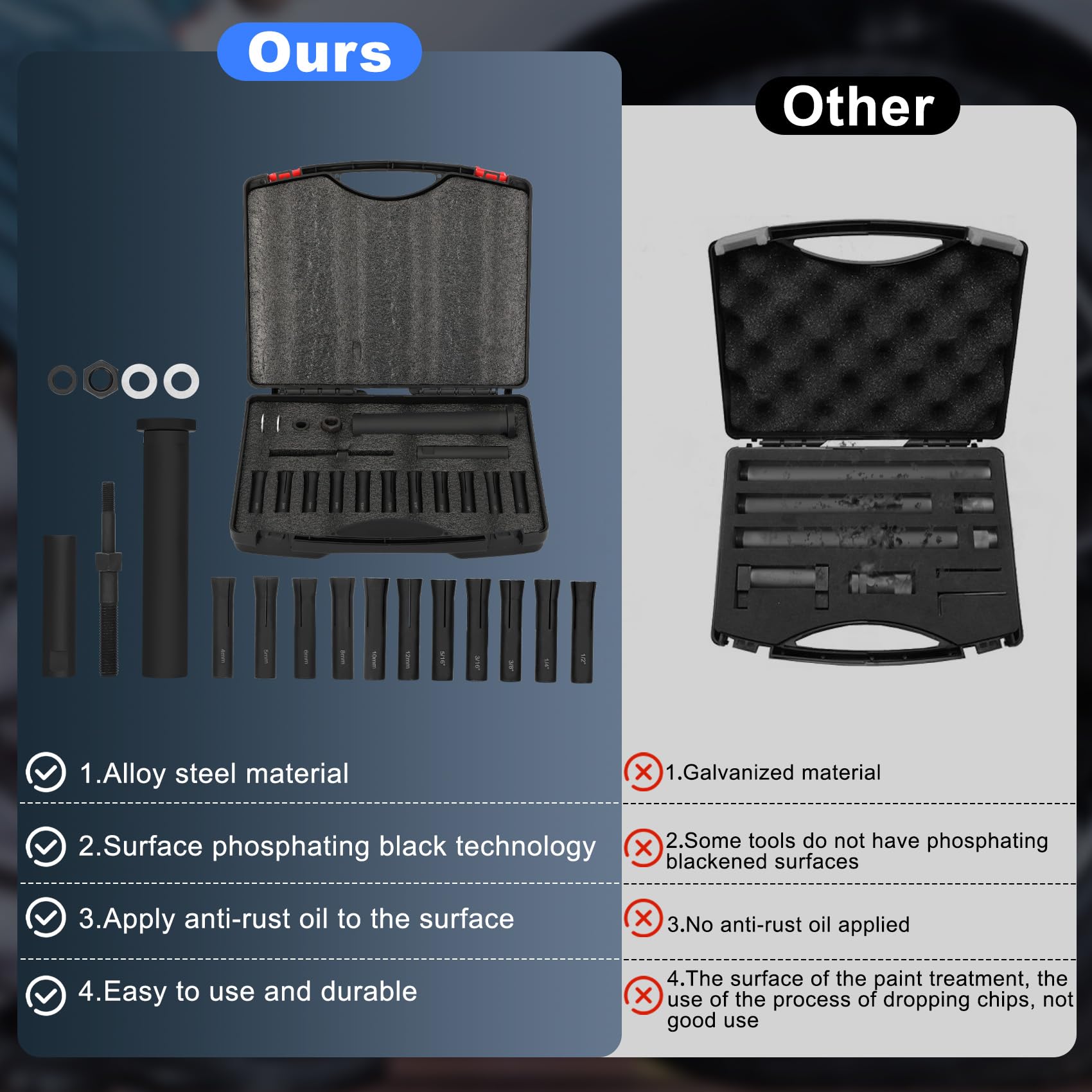 - Material upgrade:95400 pin puller master set is made of alloy steel with a black phosphating process to avoid rapid rust. Apply anti-rust oil on the surface to increase the use time.