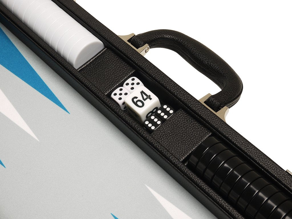 - 19-inch Premium Backgammon Set - Black with White and Astral Blue Points
