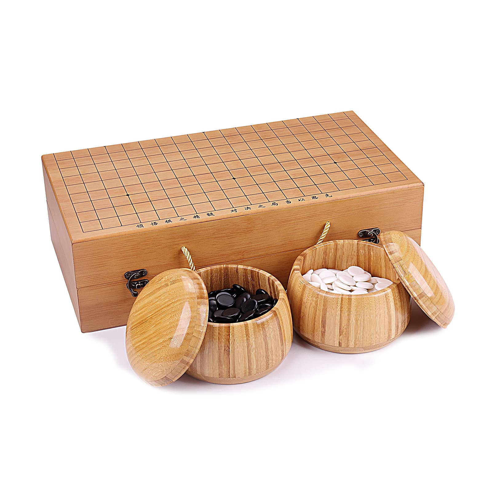 19x19 / Go Game SetHigh Grade Gift Box Board with Single Convex Melamine Stones and Bamboo Bowls Set