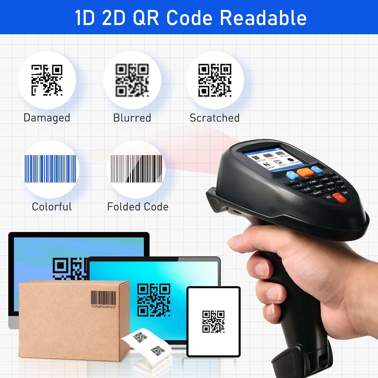 1D 2D Barcode Scanner Wireless, JRHC Portable Inventory Scanner & Data Collector Data Terminal PDT Inventory Device with Long Transmission Distance 2.4G Wireless Bar Code Reader with 2.2" LCD Screen