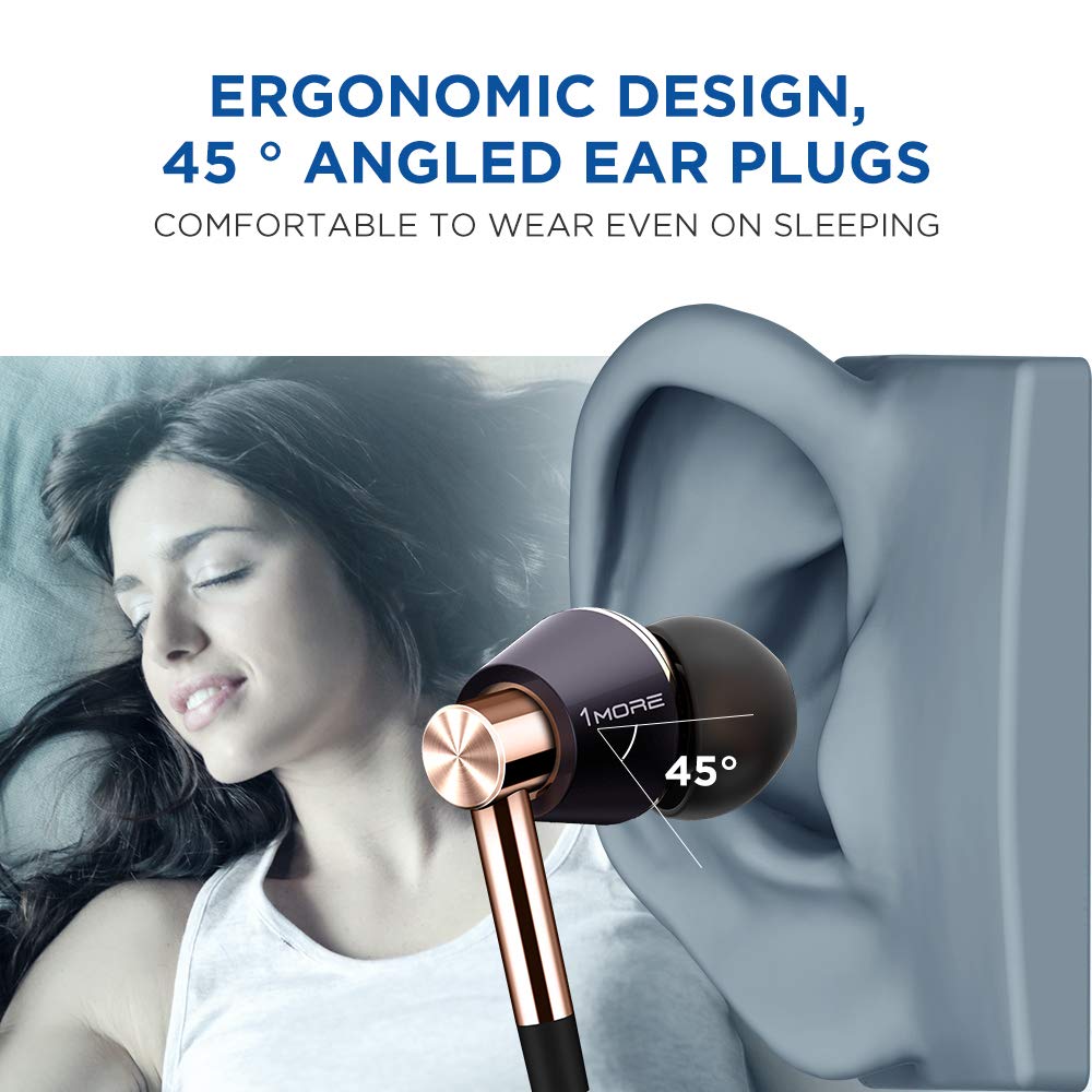 1MORE Triple Driver In-Ear Earphones Hi-Res Headphones with High Resolution, Bass Driven Sound, MEMS Mic, In-Line Remote, High Fidelity for Smartphones/PC/Tablet - Gold
