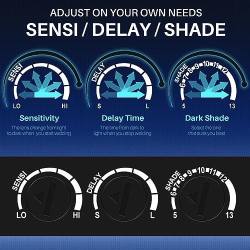 - 【Three - Knob Adjustment for Personalized Experience】Our user - friendly lens comes with three adjustable knobs. The sensitivity knob controls the response speed to the welding arc, the delay knob determines how long the lens stays dark after the arc stops, and the shade knob allows you to select from shade levels 5 - 13. These knobs let you customize the lens for different welding and cutting tasks, ensuring a more comfortable and efficient experience
