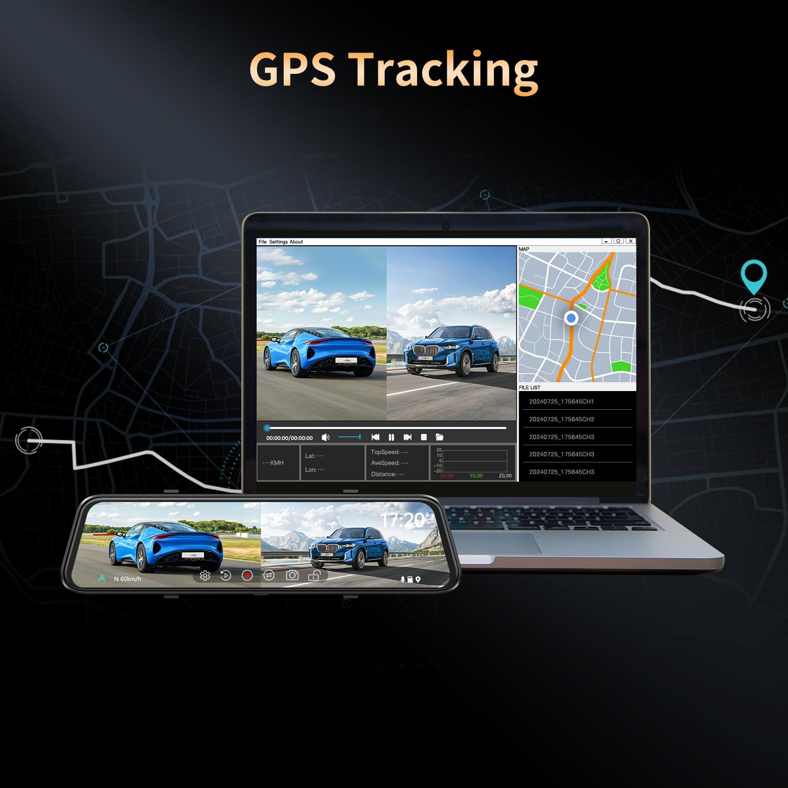 - Unexpected Capture - Equipped with G-sensor, time-lapse recording and GPS, this digital rear view mirror is ready for any unexpected events on the road. The GPS helps track your location and provides additional evidence. Ensures you have the evidence you need when surprises occur