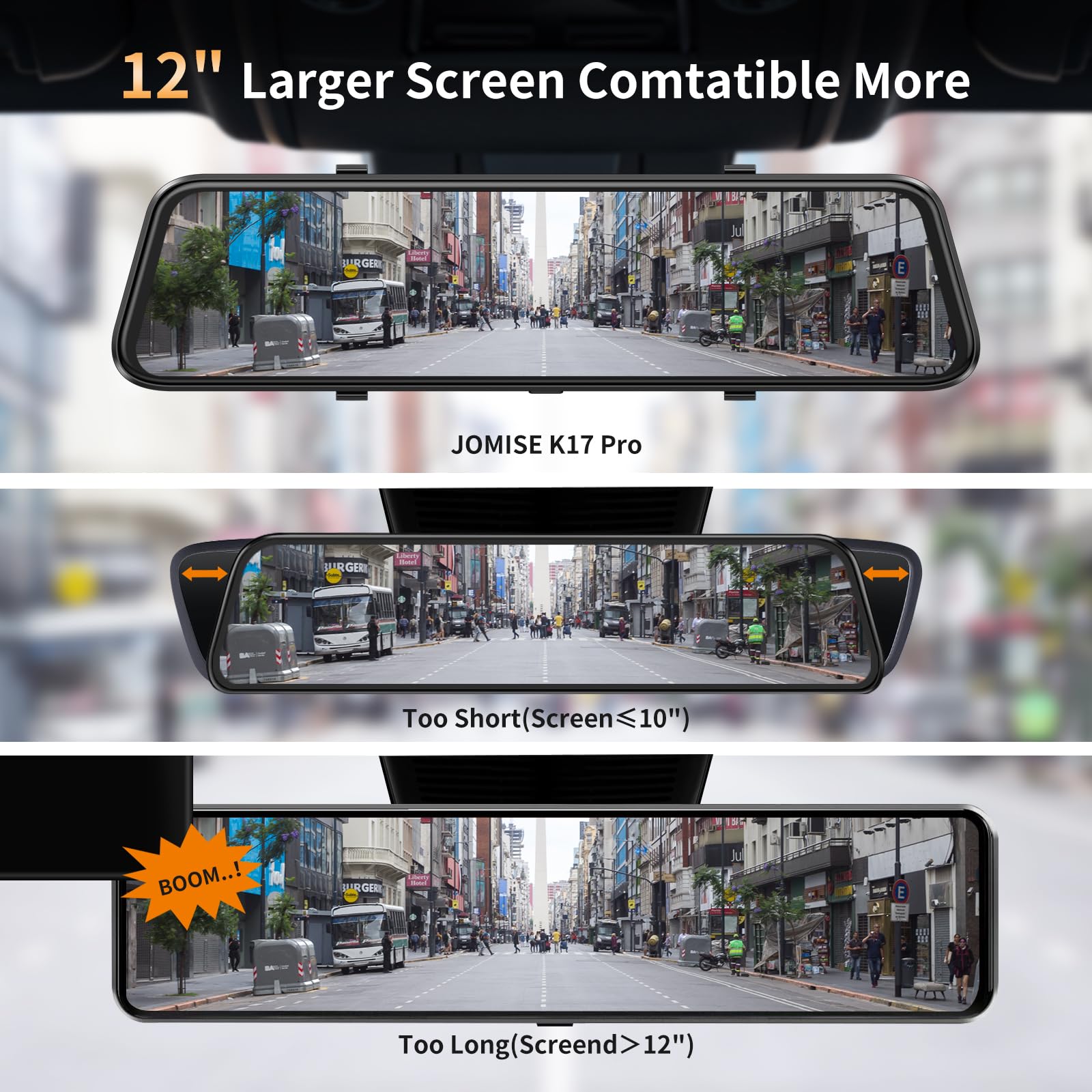 - Clear Accident Evidence - K17 Pro mirror dash cam with a 12-inch touchscreen and Carplay screen provides 2.5K resolution. The rear view mirror camera can ZOOM UP to 3 times, ensuring detailed evidence in case of an accident. It's a reliable tool for when you need to prove what happened on the road