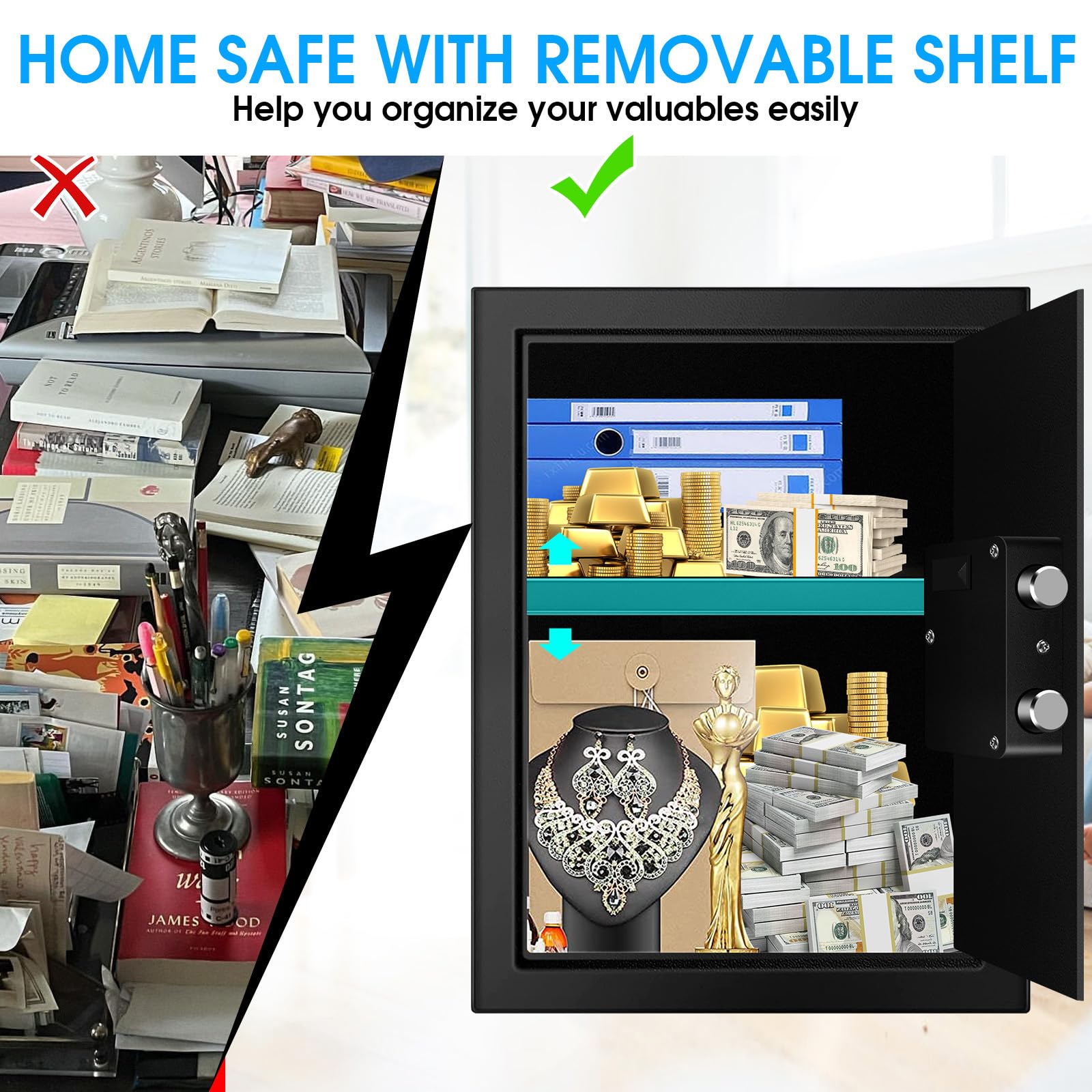 - 🔥🔥🔥【2.8 CU ft FIRE PROOF SAFE FOR HOME DOCUMENTS】: Worried about your medicines, firearms, and other sensitive items being touched by curious children? Anxious about your precious belongings from theft? Worried about your important documents disappearing? VIDXCVIT SAFE IS YOUR BEST CHOICE