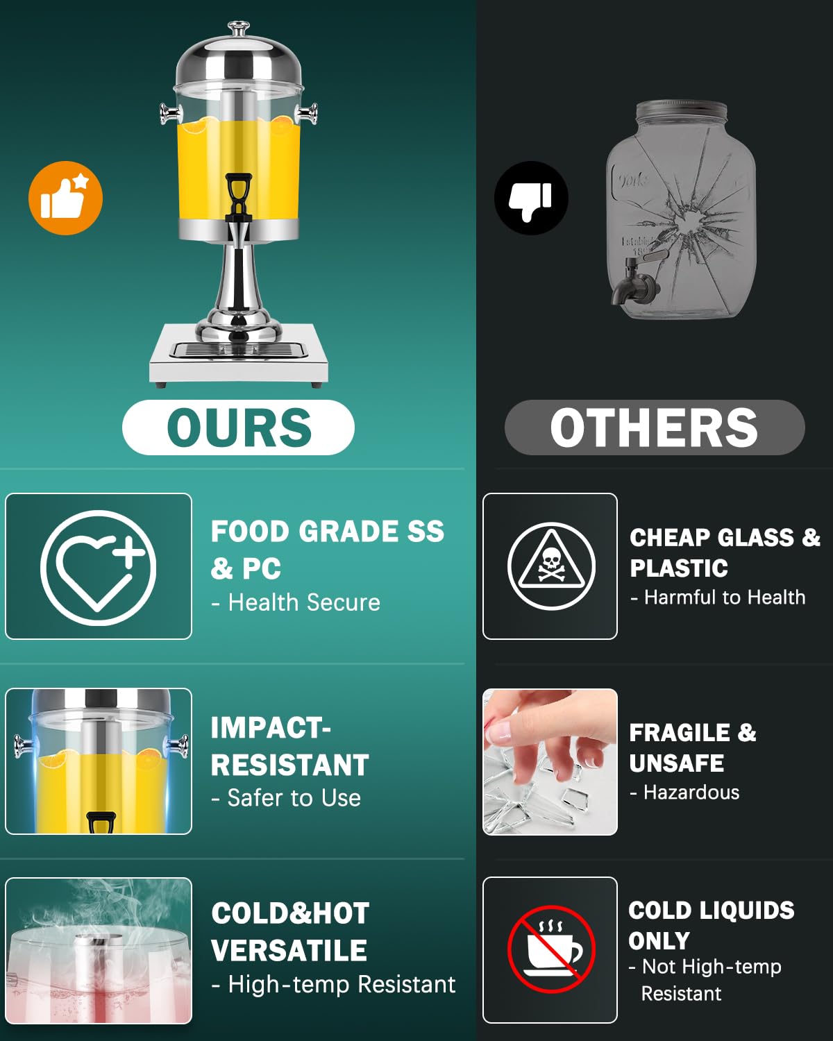 - HOT & COLD DUAL-USE: This lemonade dispenser can handle beverages ranging from -40°F to 275°F, whether it's cold fruit juice or hot coffee, this juice urn can handle it all.
