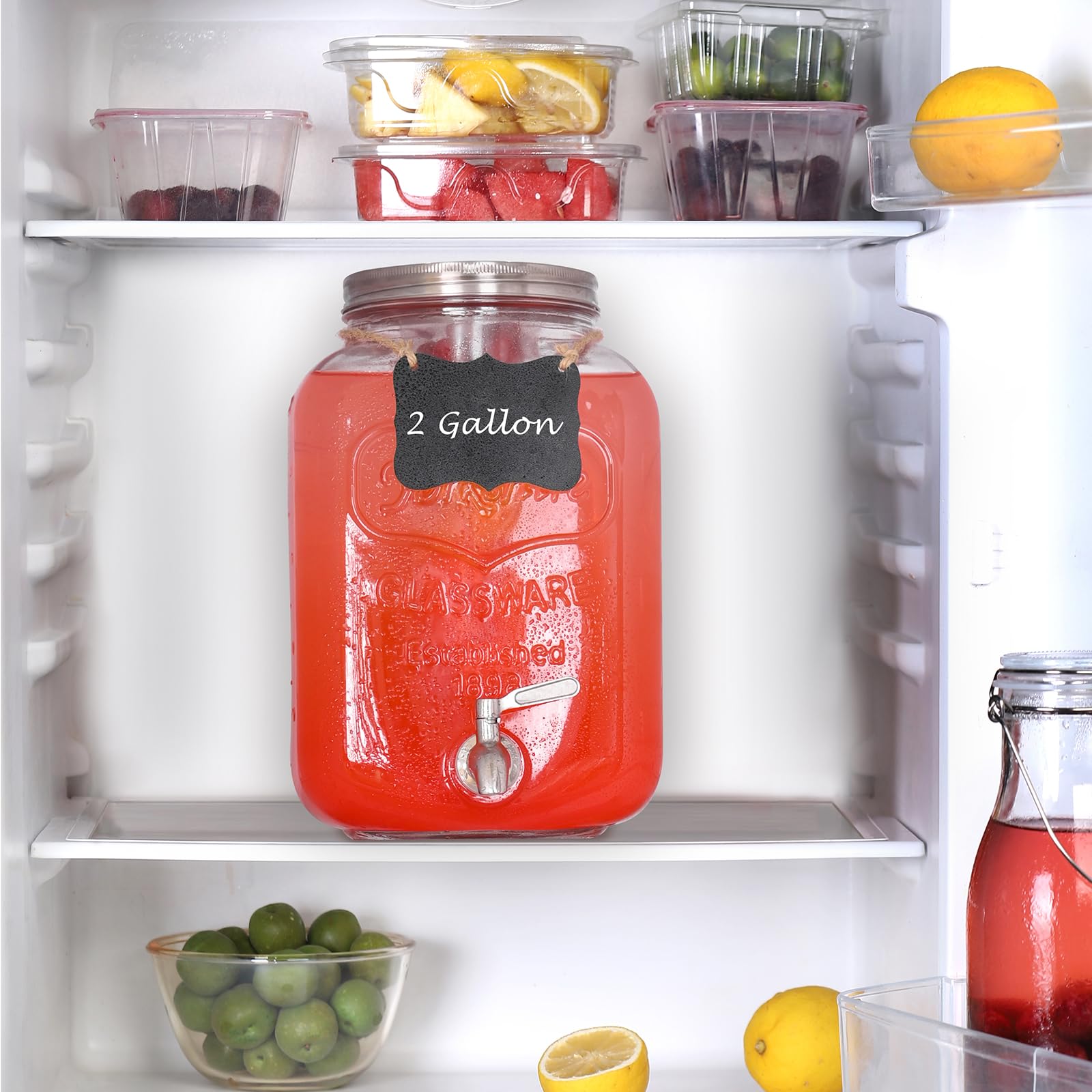 - Package Listing Include: 2 Gallon glass drink dispenser,spigot,chalkboardand, fruit infuser,metal bracket,white pen.If you receive items damaged or incomplete, or you are not satisfied, please feel free to contact us, we will provide a satisfactory solution