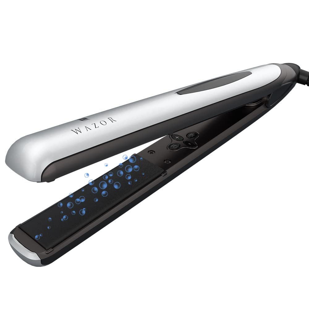 2 in 1 Flat Iron Professional Ceramic Hair Straightening Iron Instant Heat Up Automatic Shut Off and Digital LED Display Sliver White