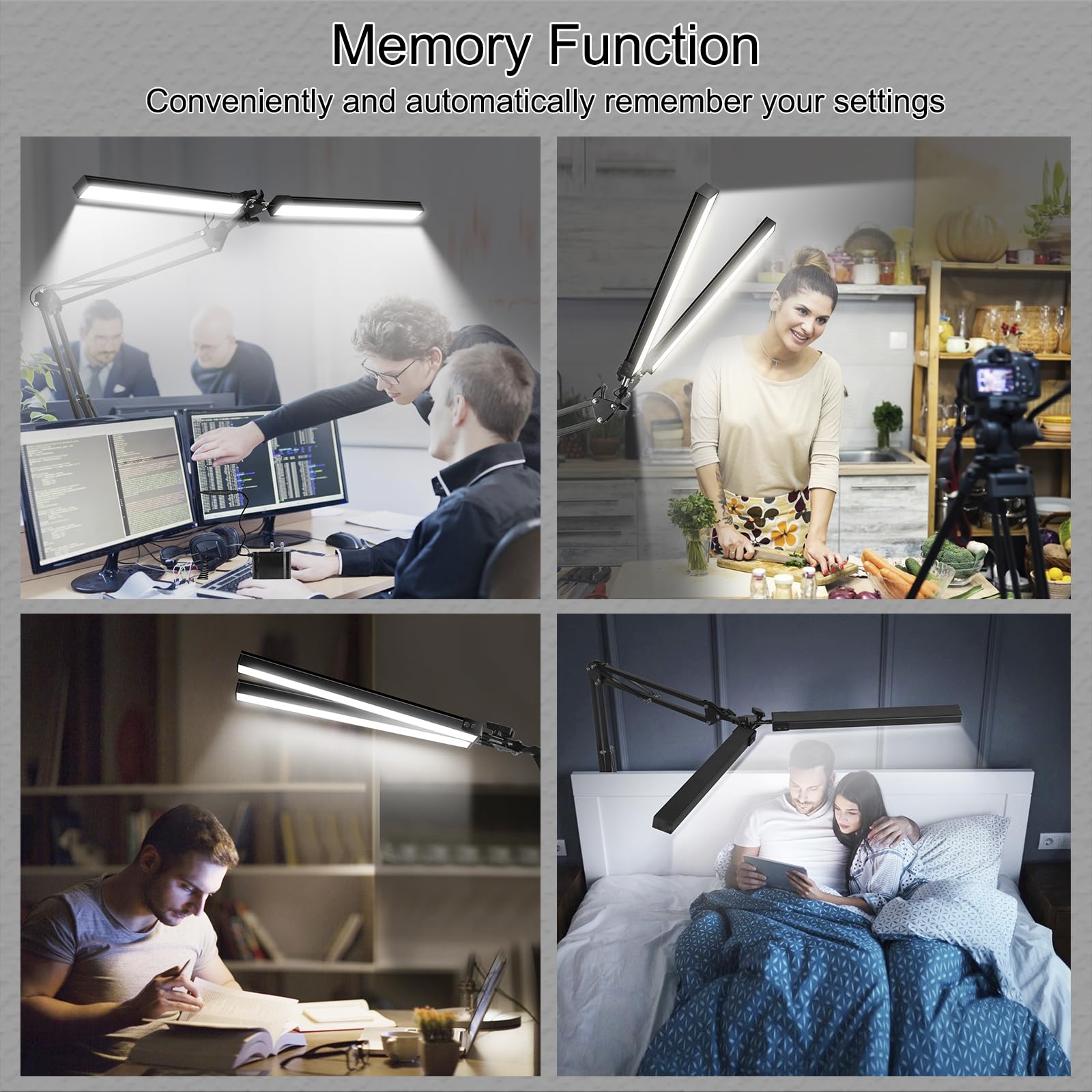 - 【Modern Look & Space-Saving】: Combining a sleek, modern appearance with functional design, this desk lamp features a double head and swing arm, providing 360° flexible adjustments. Its concealed base helps save space, making it ideal for large workstations with wide curved monitors or dual displays.