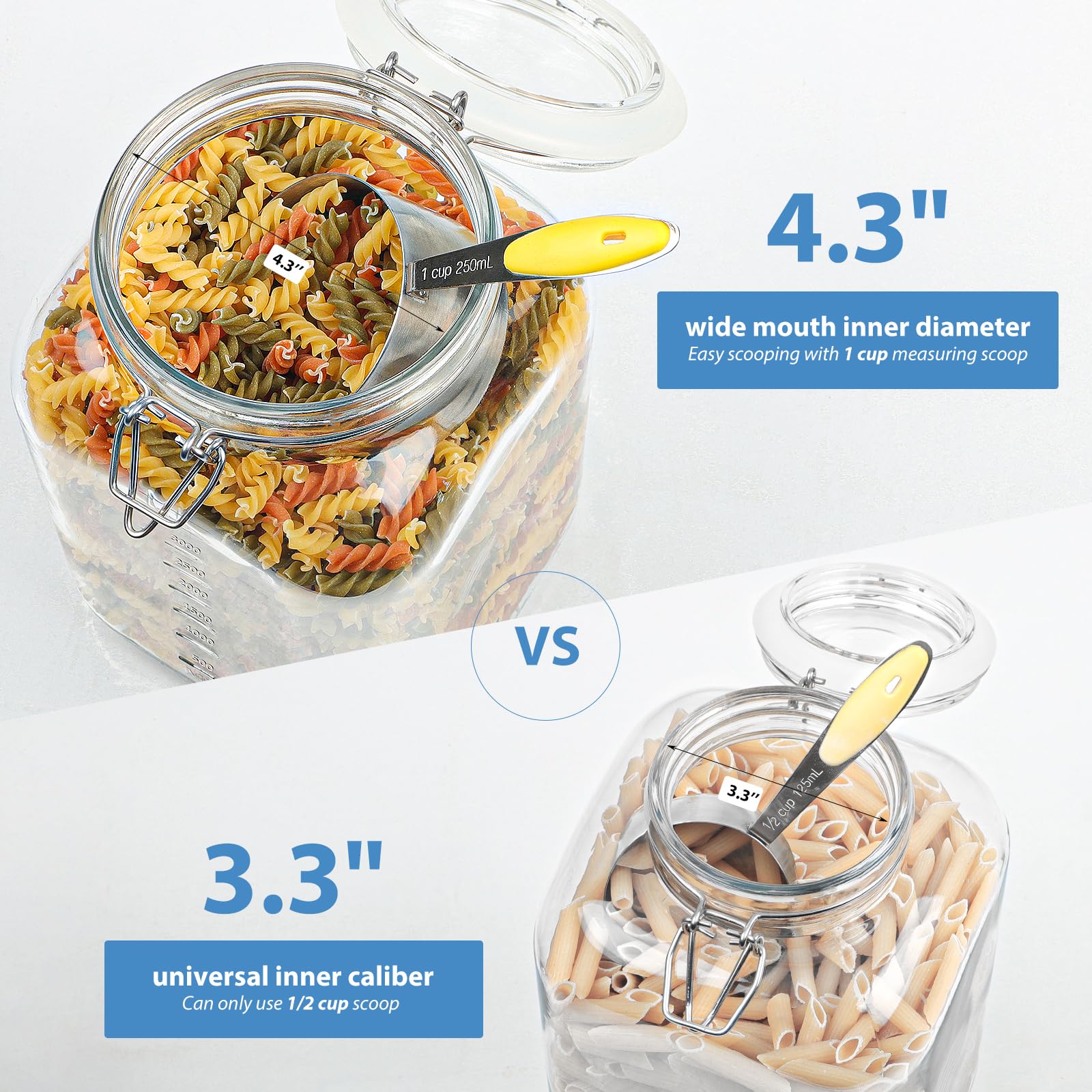 - BIG OPENING: Large size with large mouth(4.3 inch/10.9 cm) makes cookie jars easy to get eggs out and in. The mouth of the big jar is really wide and you can easily fit a measuring cup into it. Nice volume measurement on jars is very convenient in addition.