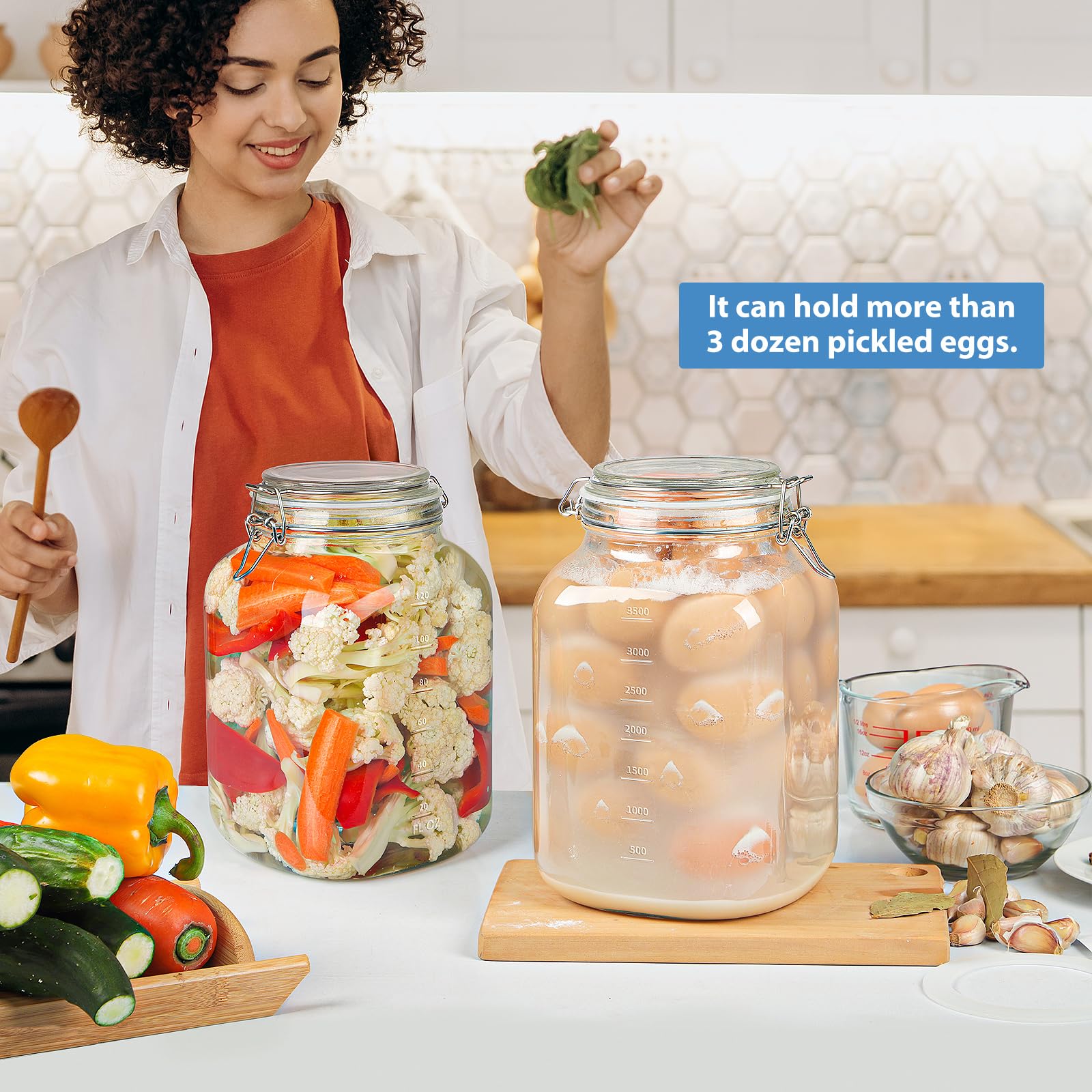- LARGE CAPICITY:1 gallon glass jars with lids can manage large amounts of flour and sugar. Perfect size for food storage, pickling, fermenting, and canning. The attractive appearance is a plus for your home and Halloween party.
