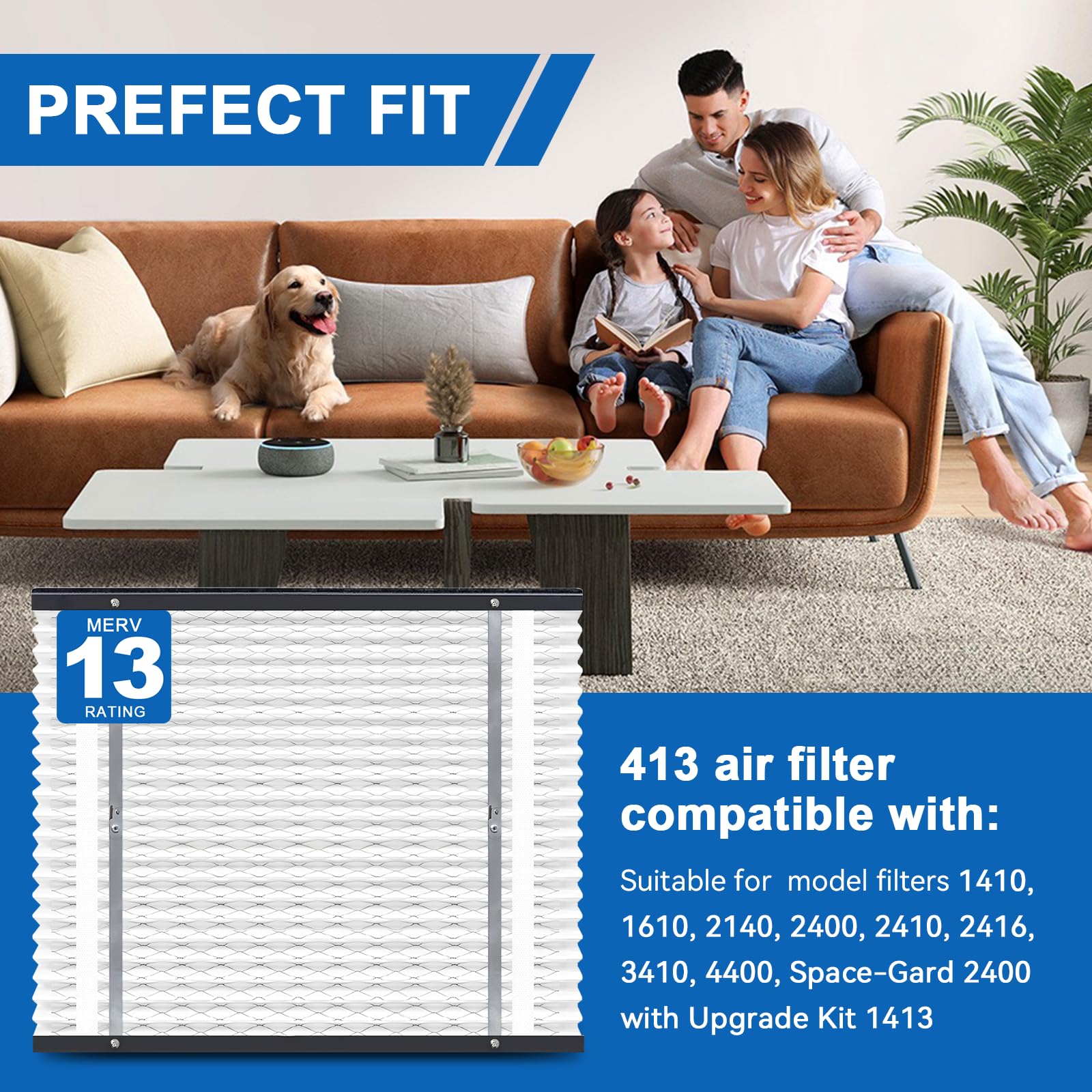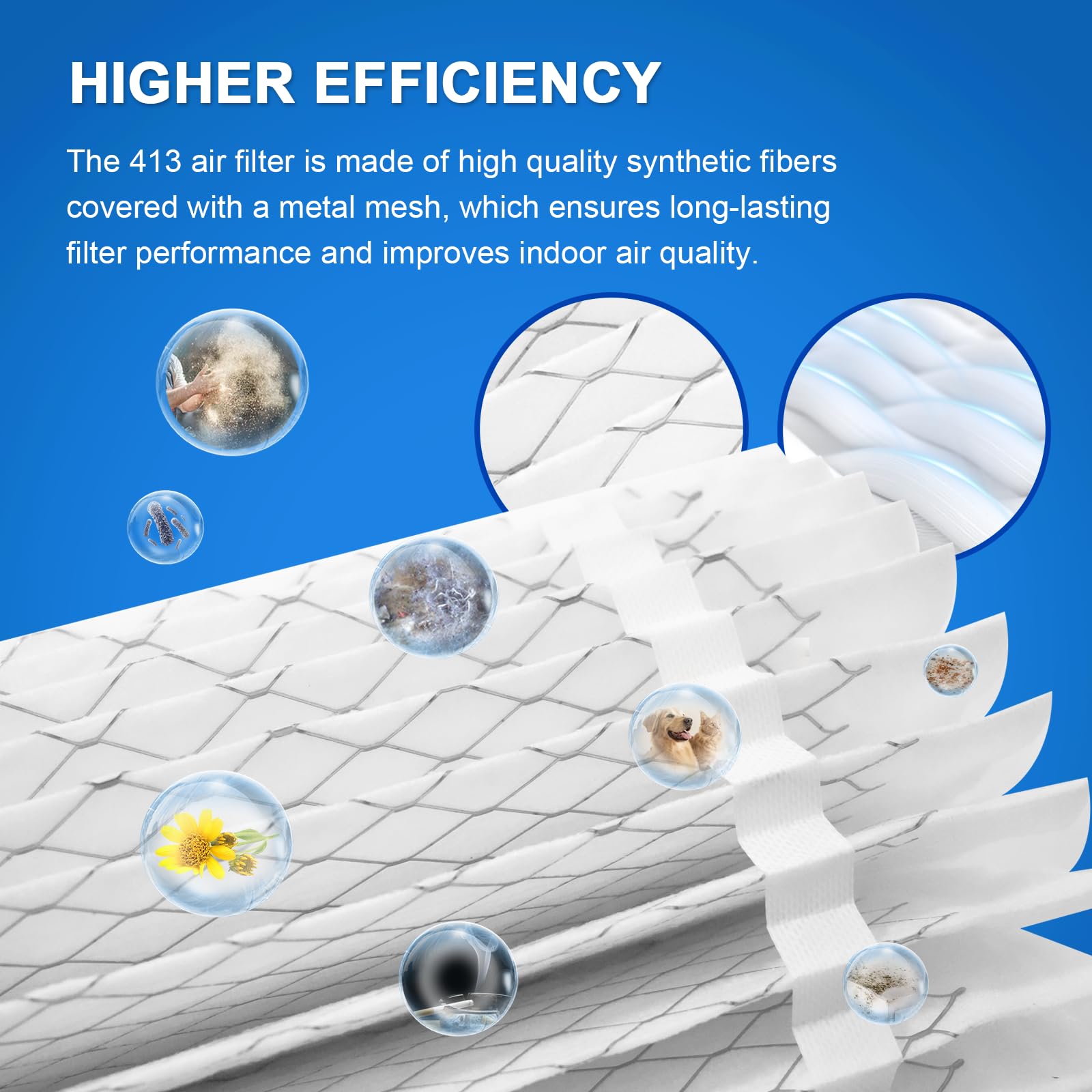 - 【MERV-13 Air Filter】413 replacement Air filter is MERV 13 rating effectively traps 95% of dust, This synthetic fiber filter cotton offers low resistance and a long service life. The soft and light fiber filter cotton material provides excellent air permeability, ensuring optimal airflow throughout your home.