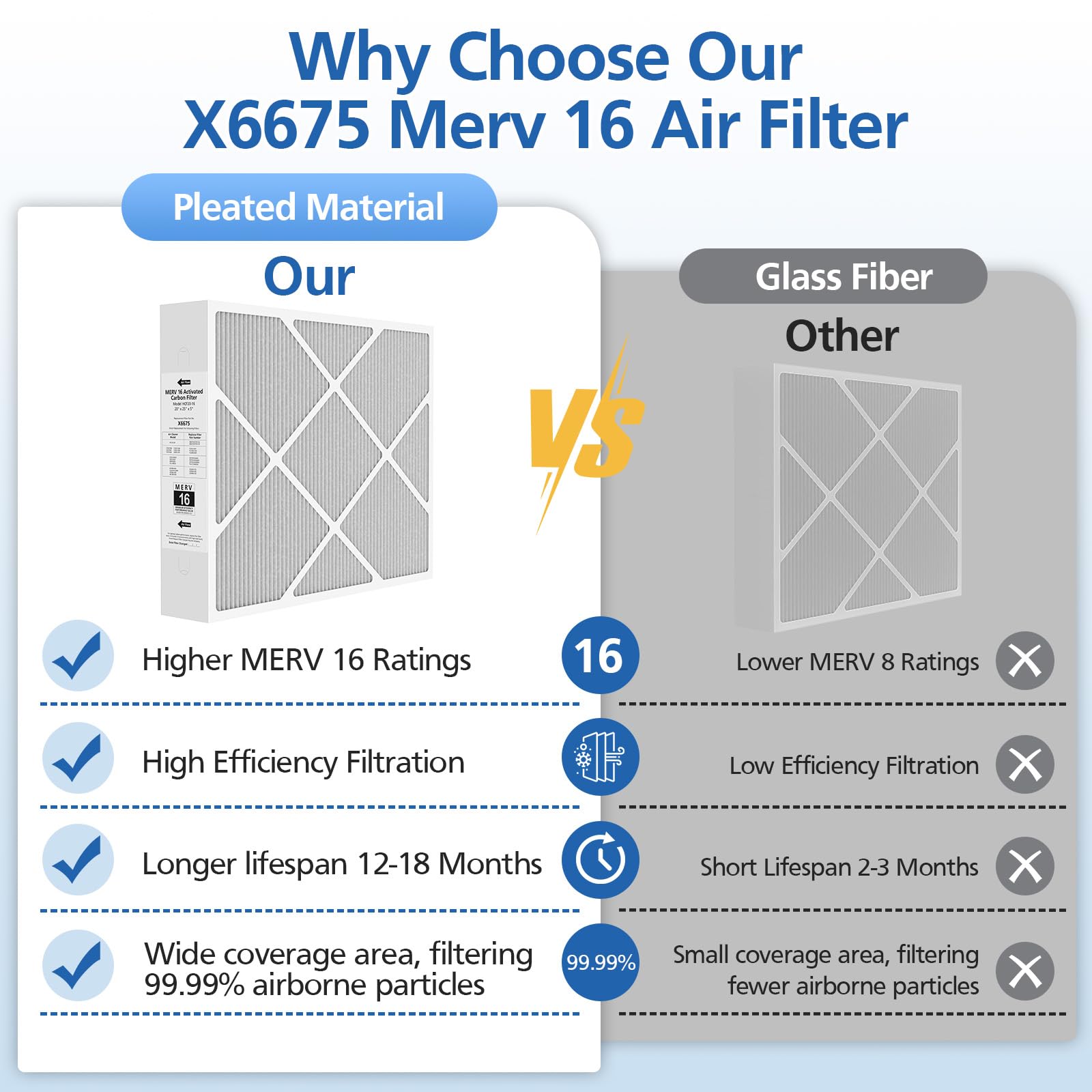 The MERV 16 air filter is perfectly compatible with X6675 following air cleaner models: