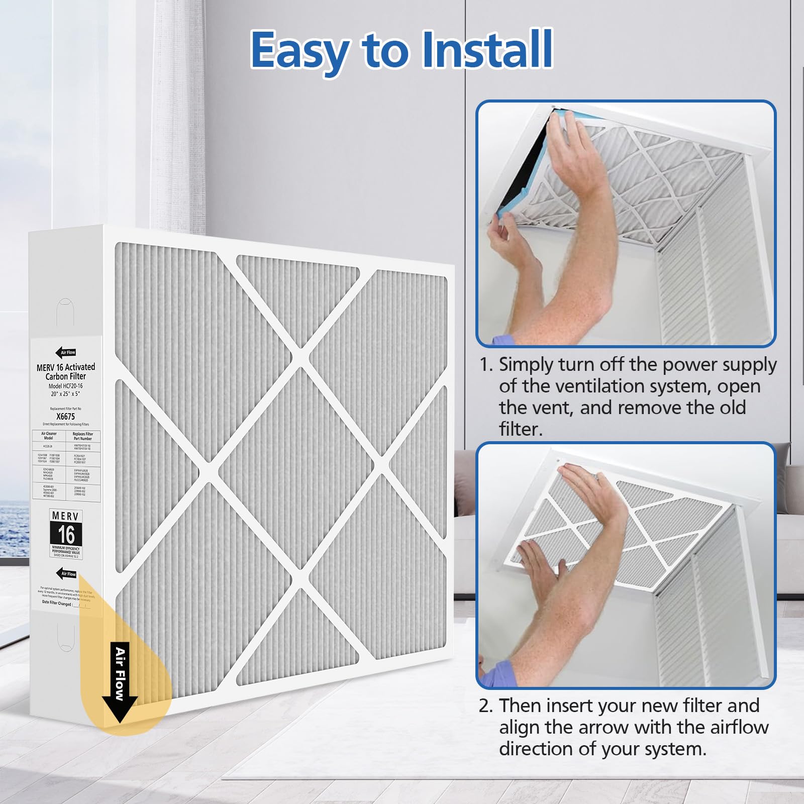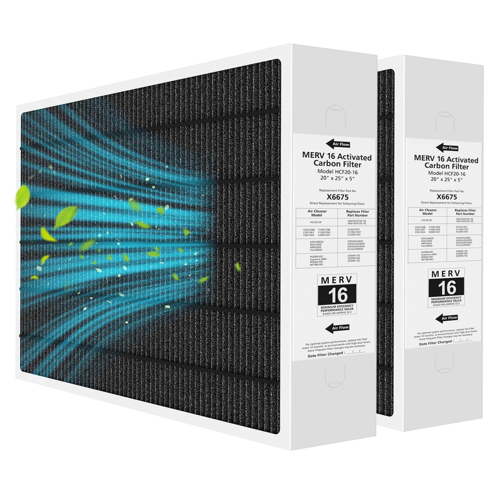 2 Pack 6675 20x25x5 MERV 16 Air Filter Compatible with Lennox X6675 and Lennox HCC20-28 Healthy Climate Carbon Clean MERV 16 Furnace Filter for HVAC System, Part Number HCF20-16, HCF20-10