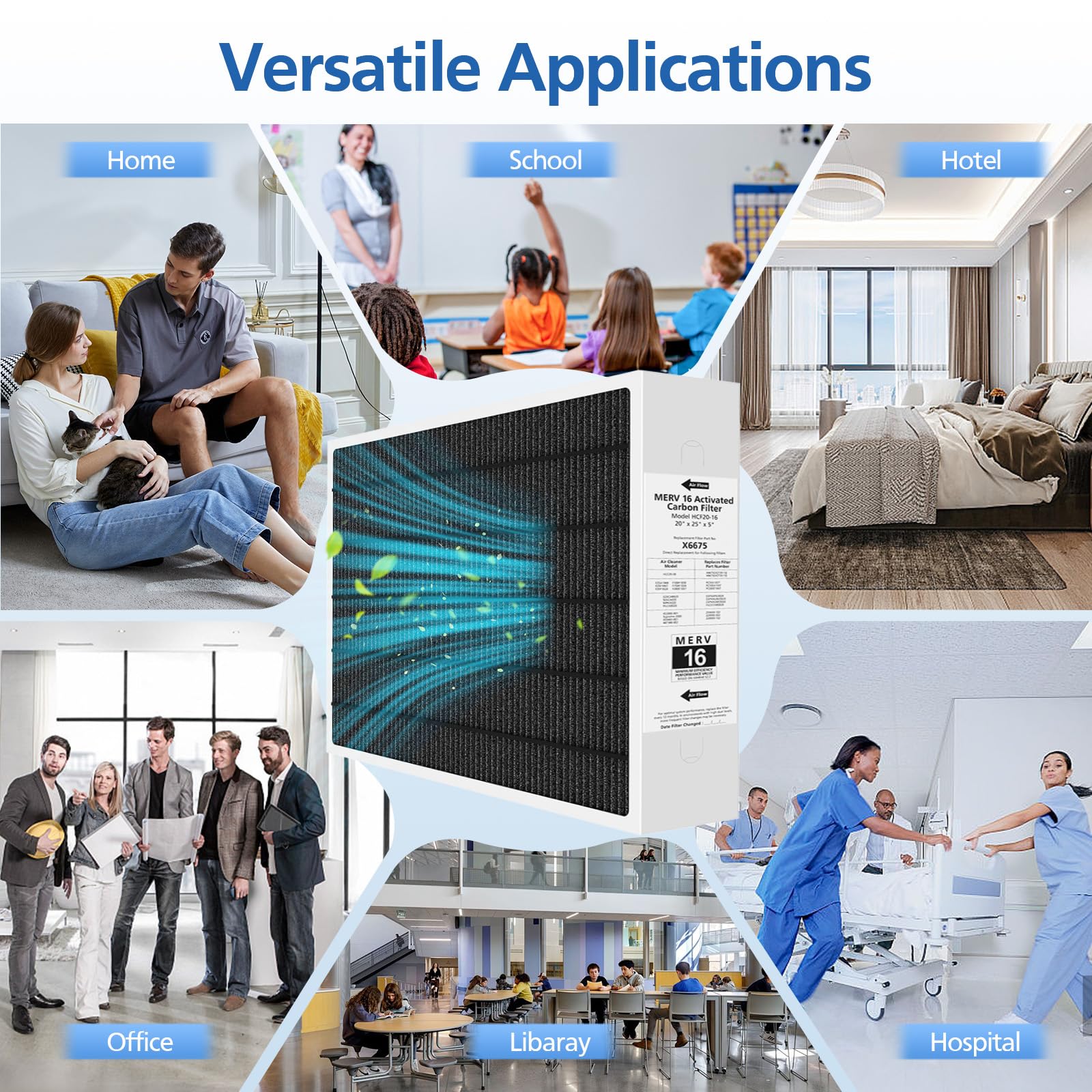 - šš¢šš šš©š©š„š¢šššš¢šØš§: The MERV 16 carbon clean filter is an ideal replacement for your furnace, air conditioner, or HVAC system. It's suitable for use in homes, hospitals, and various other settings. This 20x25x5 MERV 16 air filter boasts exceptional durability, extending replacement intervals and ultimately saving you time and money. Filter made of FSC-Certified paper