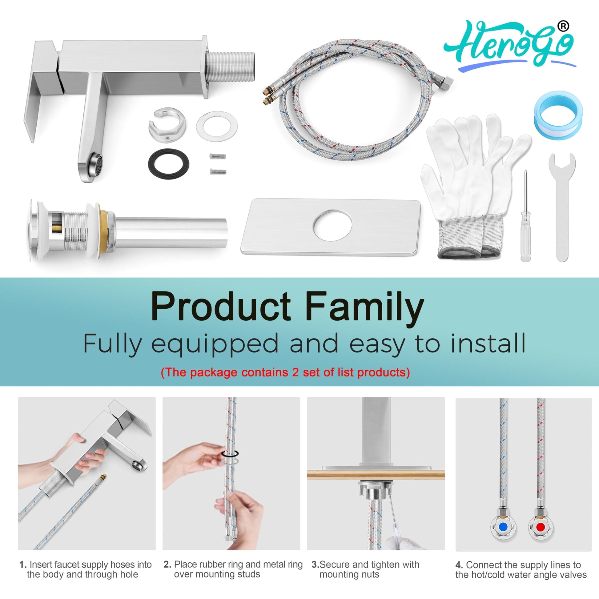 - Premium material & Durable, Herogo modern bathroom faucets are made of solid SUS304 stainless steel, food grade PEX inner hose, lead-free and healthy for your daily use, premium ceramic cartridge has passed 500,000 cycle testing, which provide you a professional drip-free durability performance