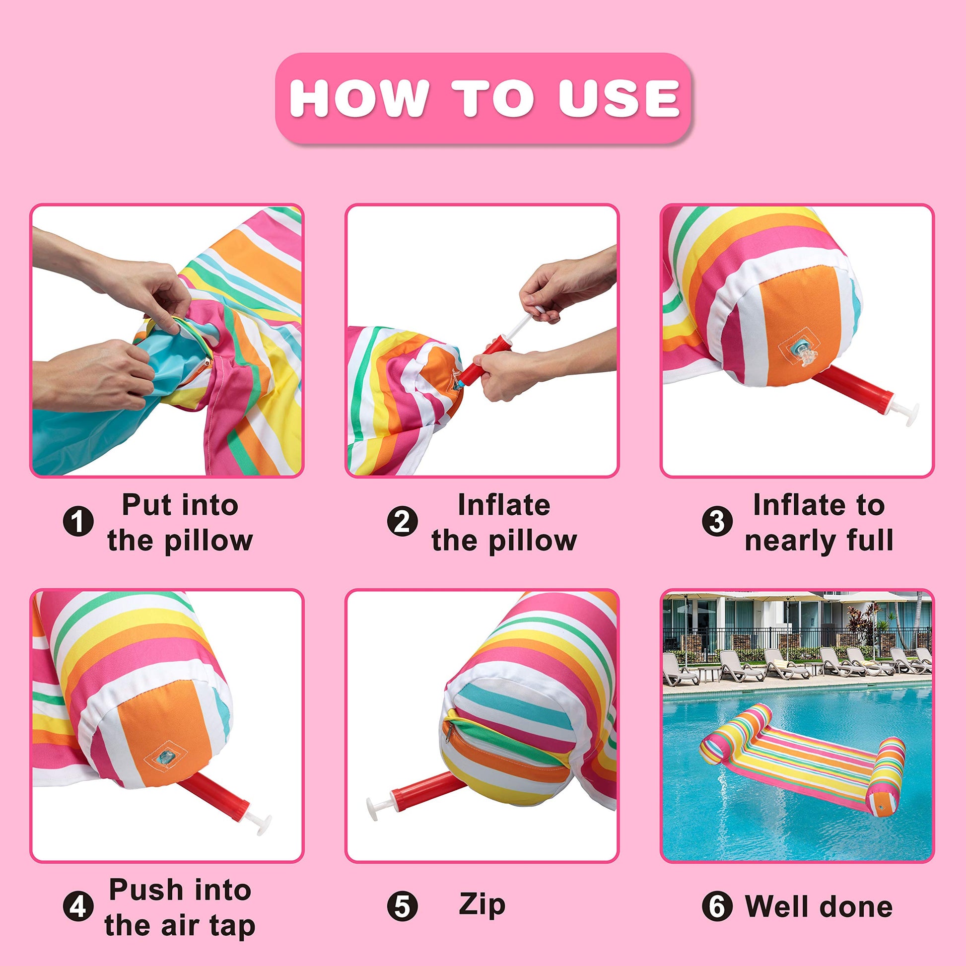 - WIDE USAGE. This Pool Hammock is easy to use and can convert into any use you need. For instance, you can make it a Hammock for taking a sunbath and relaxing in the beach resort.