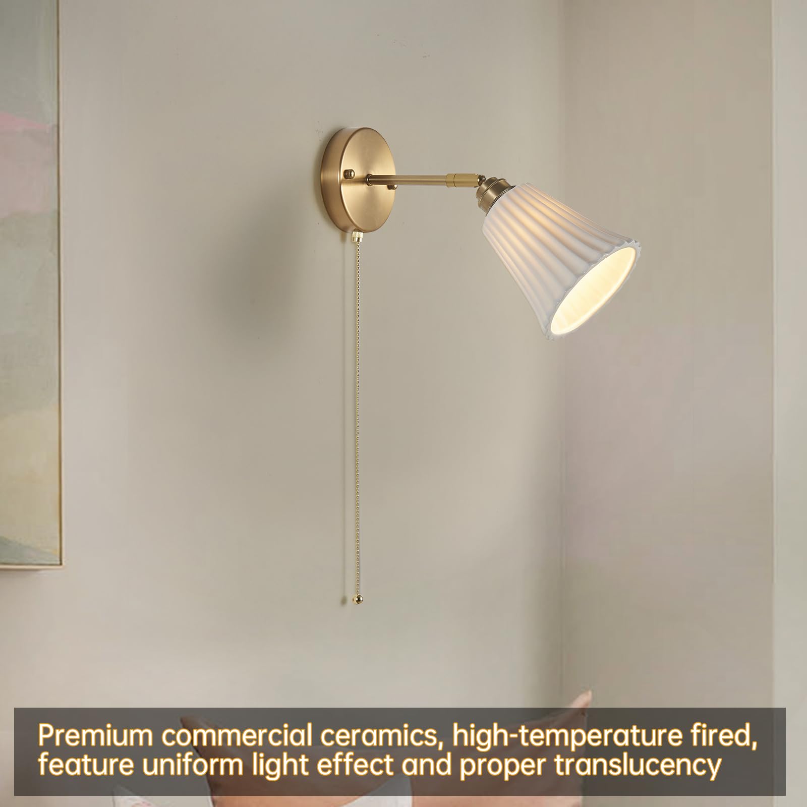 - 【Premium Commercial-Grade Ceramic Construction】 - Crafted from high-density, professional-grade ceramic, this wall sconce features a lampshade built to withstand daily use while maintaining timeless elegance. The durable material resists cracks, chips, and fading, ensuring long-lasting performance in busy households or commercial spaces—no delicate care required.