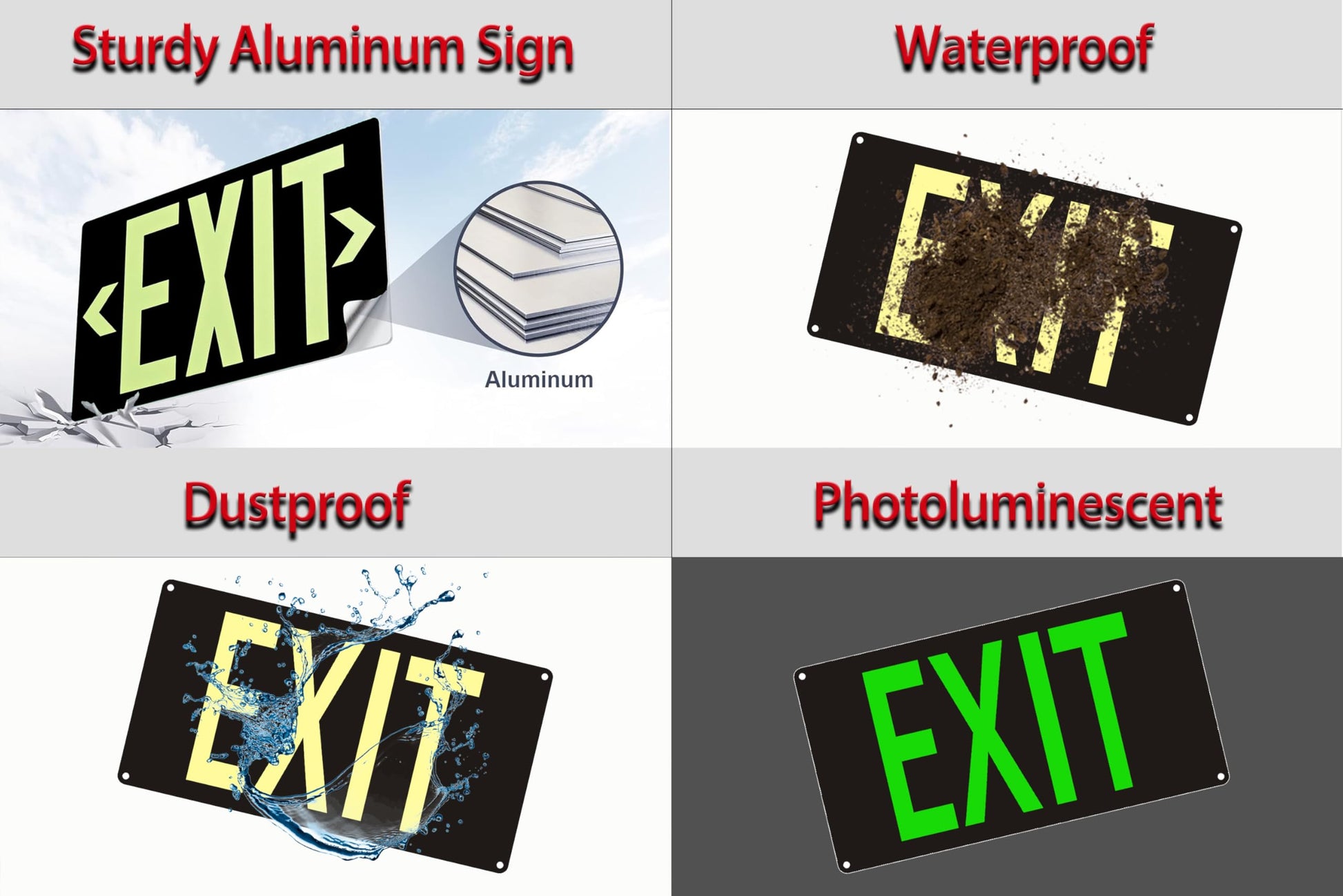 - ✔【Free Maintenance & Wide Applications】 Not require electrical wiring or battery backup. The photoluminesent exit sign both for indoor and outdoor use, also meet your safety needs from offices, schools, hospitals, churches, banks and public buildings. It is great for waterproof, heat and cold resistance.