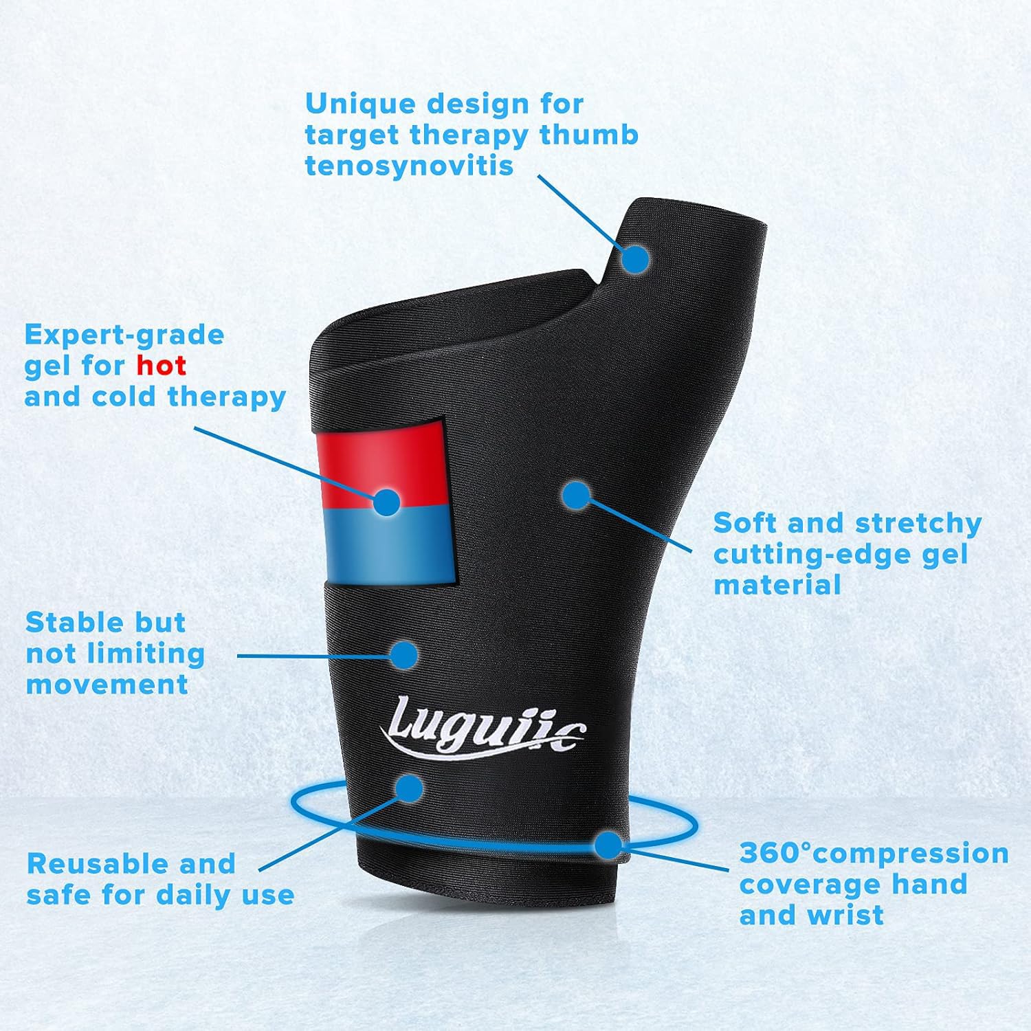 - Full-Area Coverage: Provides 360° heat and cold compression for full treatment area. Reduces pain and swelling from conditions such as carpal tunnel, tendinitis, and inflammation.
