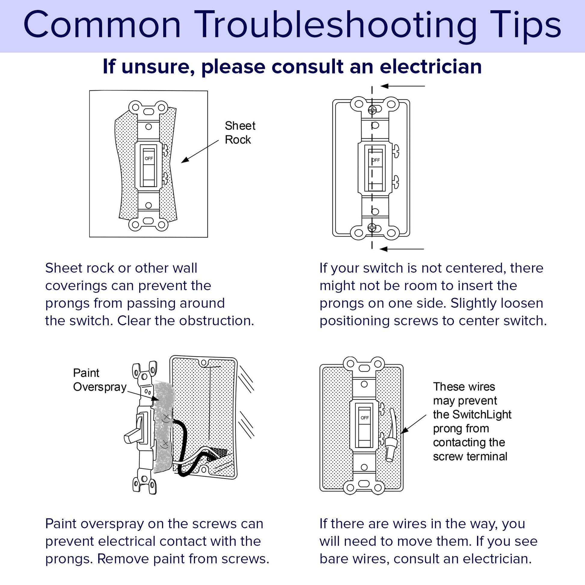 - Before You Buy - The SwitchLight requires your light switch to have 2 side screw terminals in order for the prongs to draw power. Check your light switch for those screws. Use the 2nd image for reference.