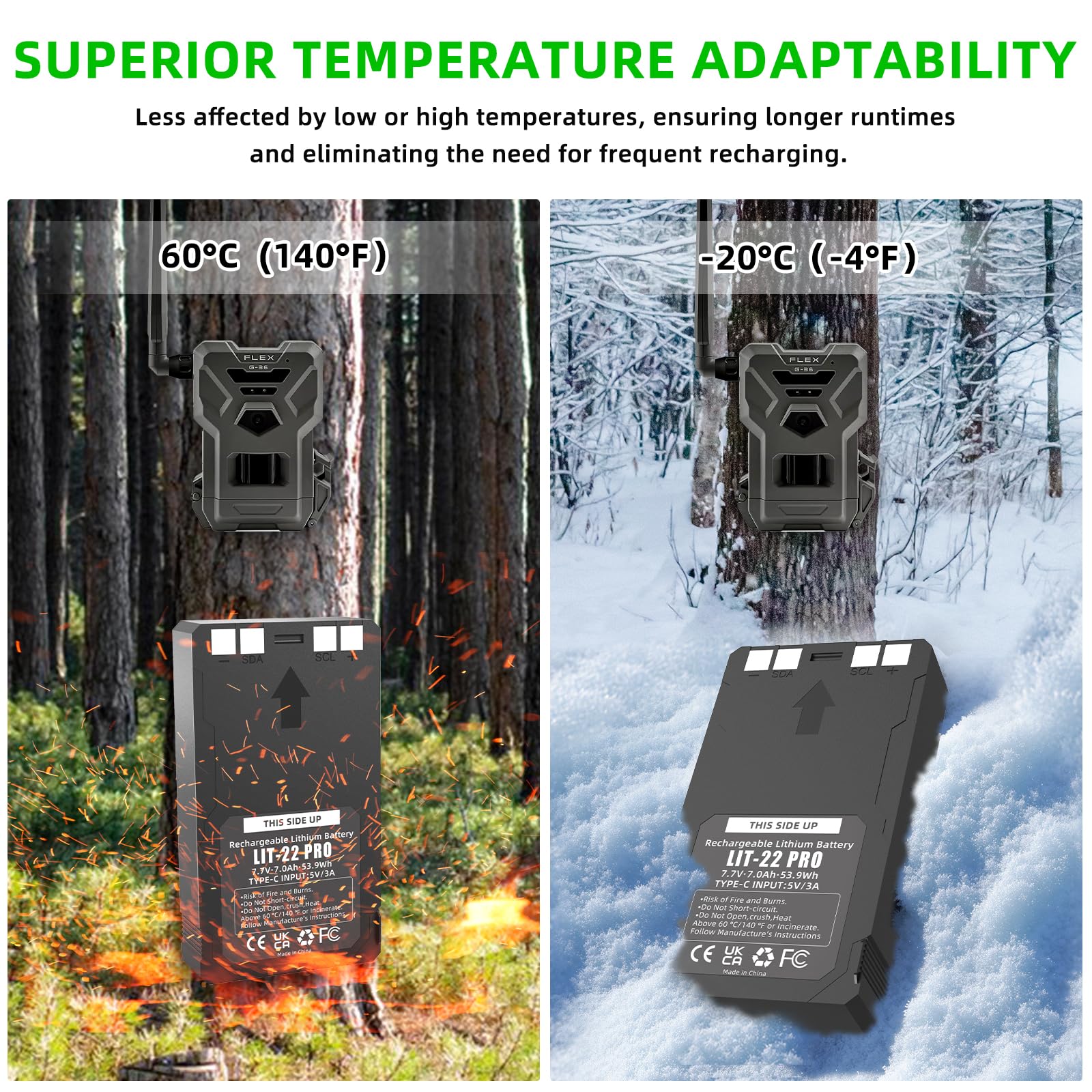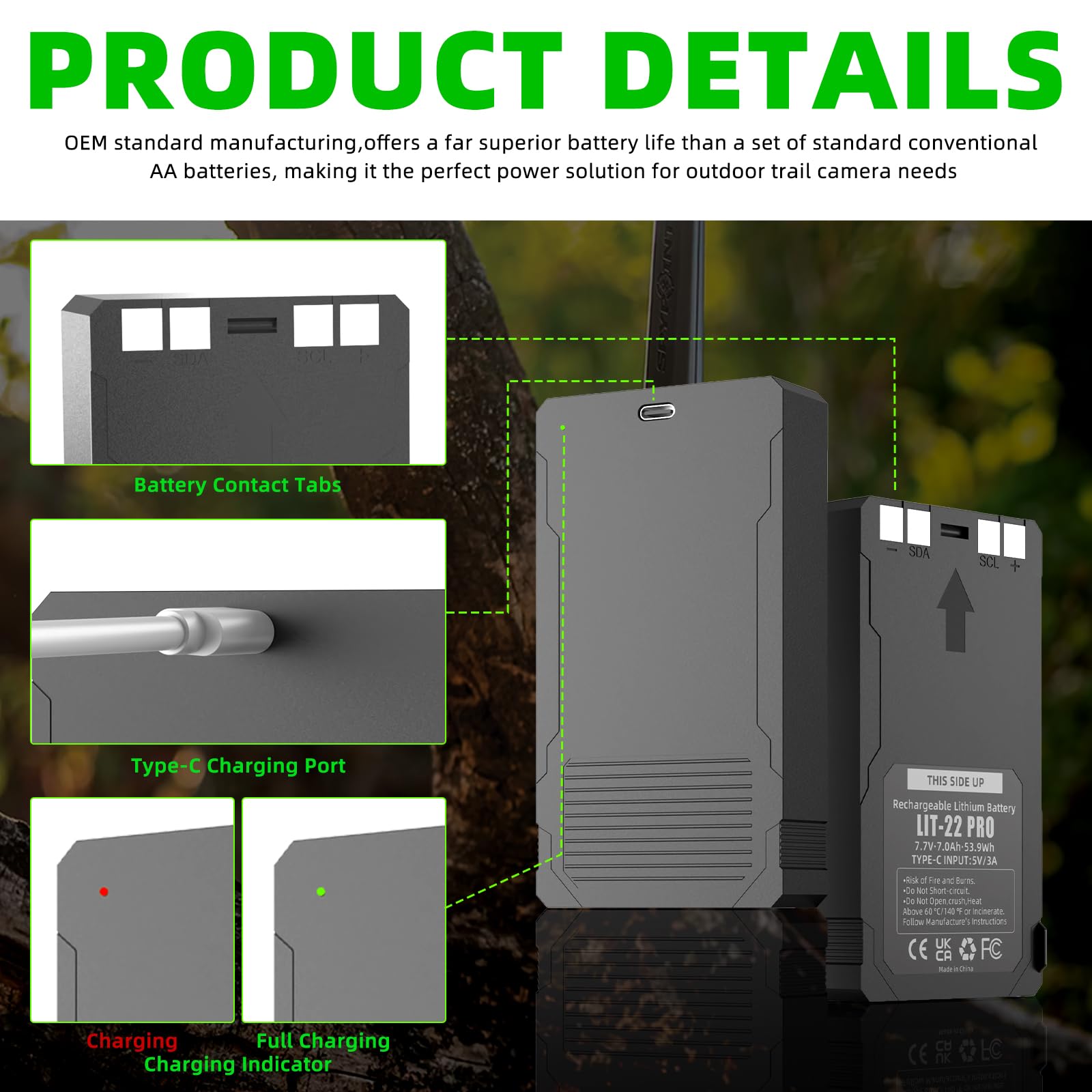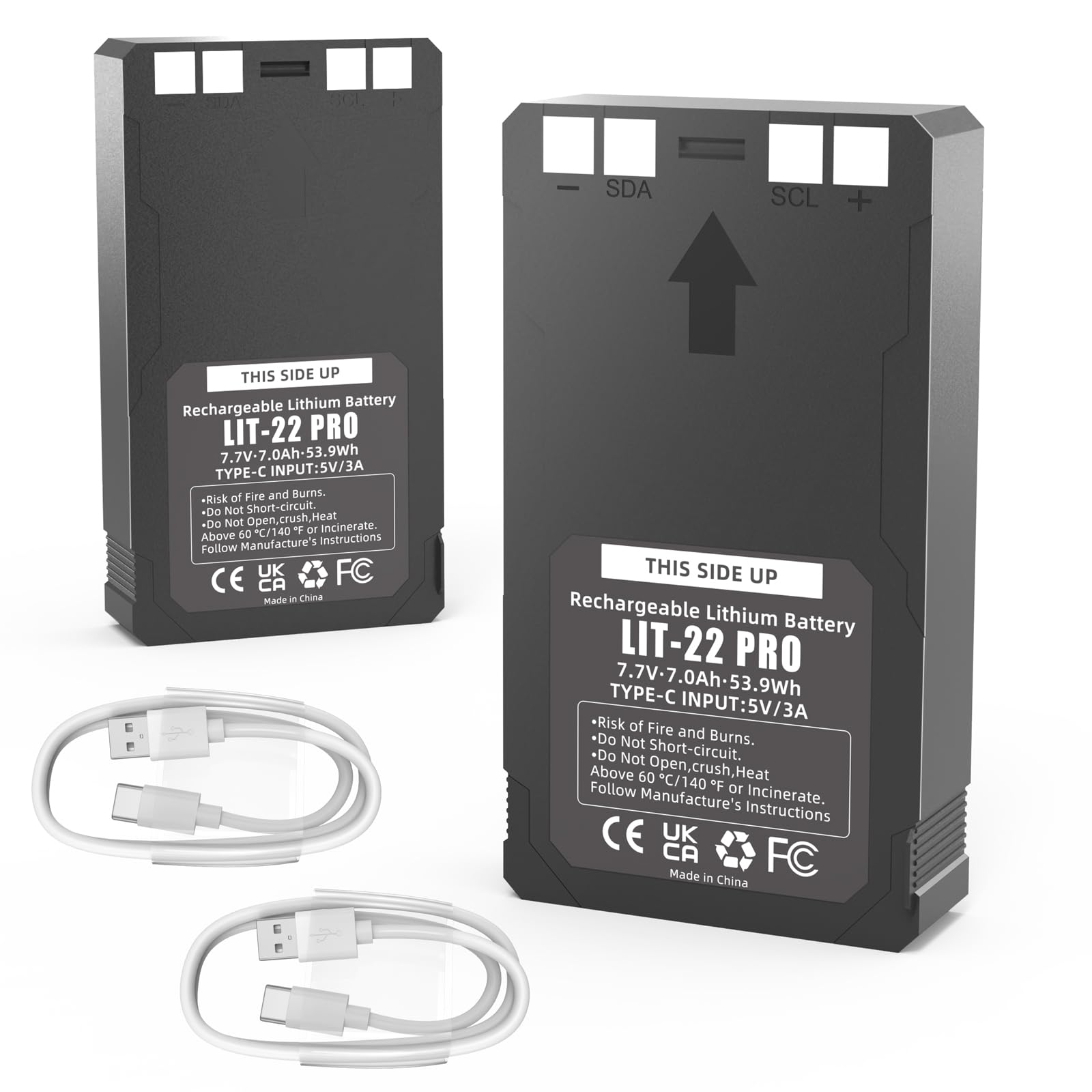2 Pack Upgrade 7000mAh Lit-22 Rechargeable Lithium Battery for SPYPOINT Cellular Trail Cameras Flex-M, Flex-S, Flex-Plus, Flex-G36 with Type-C Charging Cable