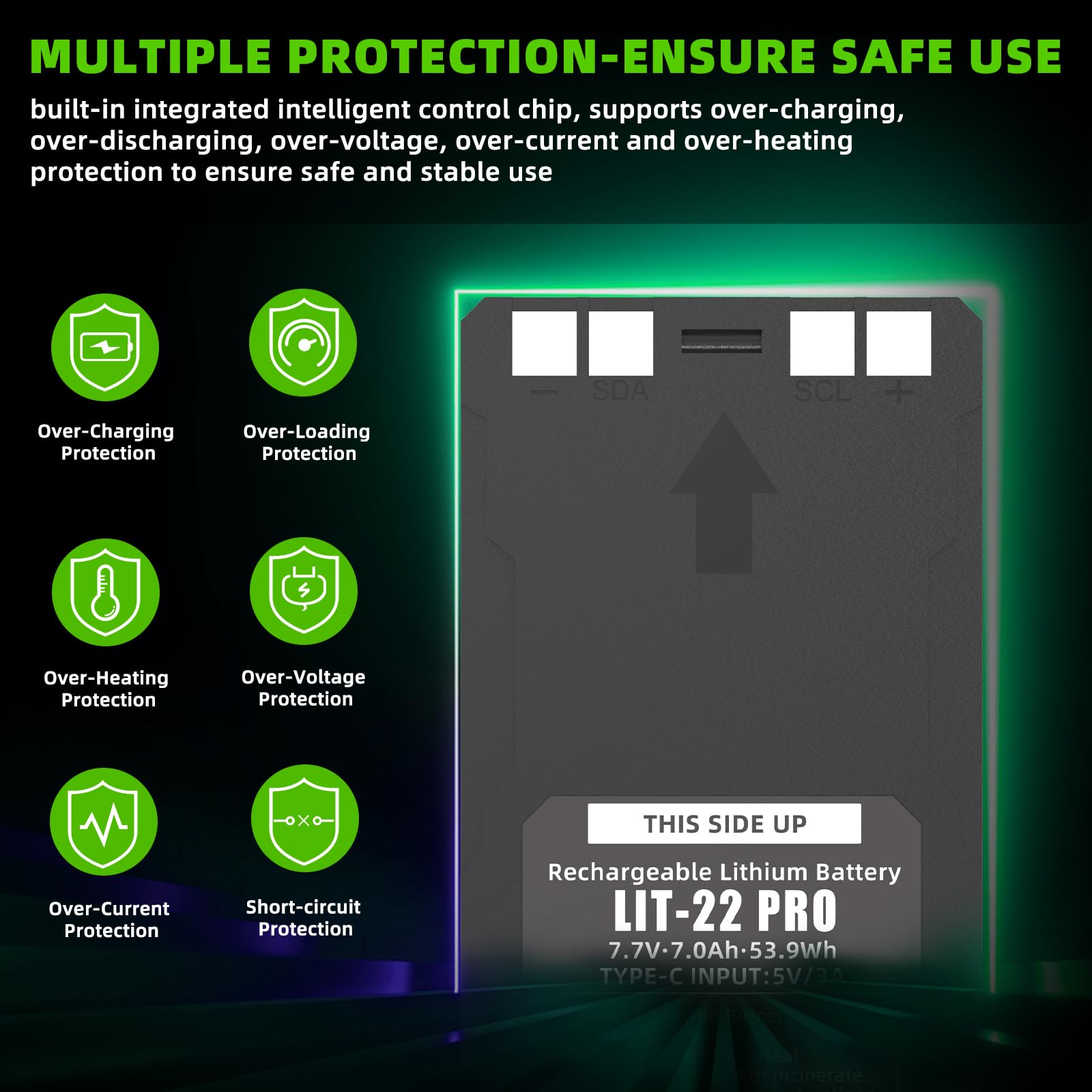 - The 7.0Ah upgraded-capacity replacement lithium-ion battery provides longer battery life and runtime, reduces the number of times you have to replace batteries, and minimizes disruption to the hunting area