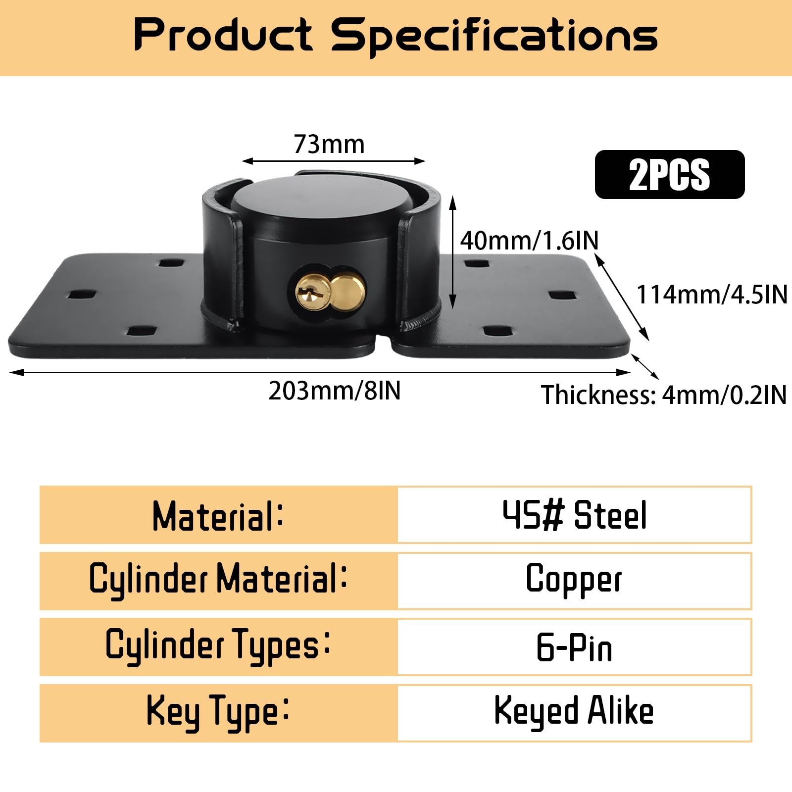Made of 45# steel, the 73mm-diameter, 40mm-high lock body with a black chrome finish resists rust and corrosion. Its die-cast core and hidden hardened shackle withstand bolt cutters.