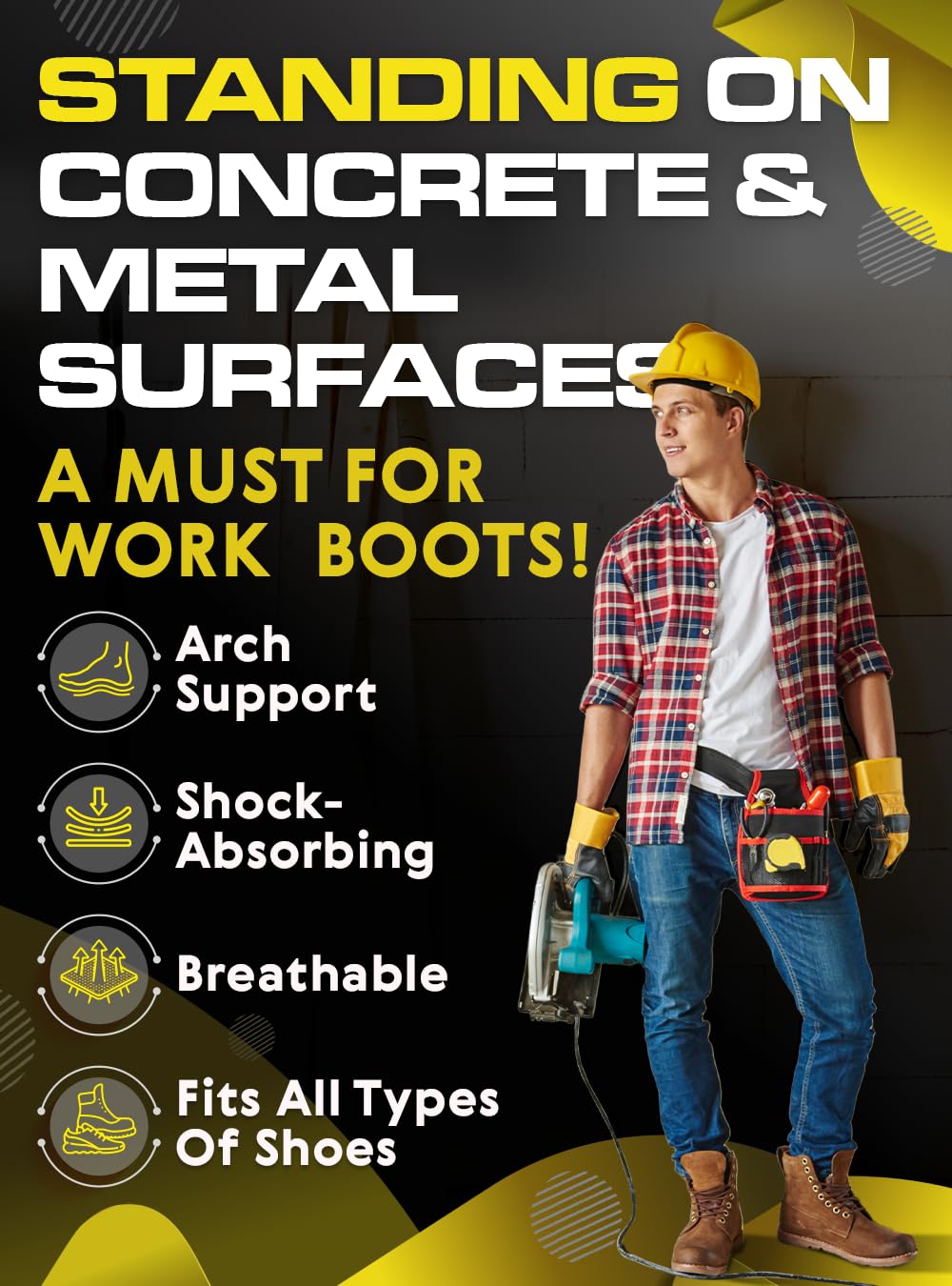 - Fits many shoe types: work insoles fit for women and men. They fit a variety of shoe types: work boots/shoes, casual shoes, sneakers and men's dress shoes