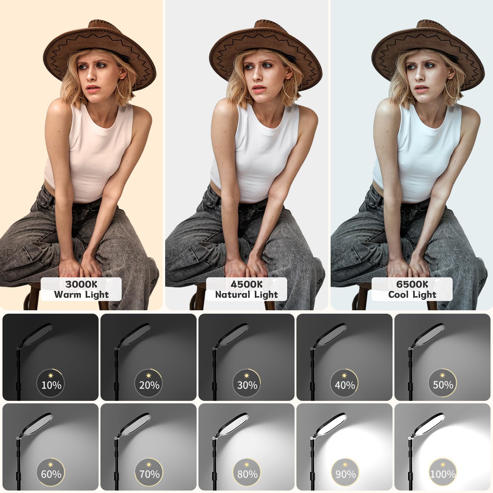 - CONVENIENT USB POWER: The LED desk ring light with stand is powered by USB, making it easy to use with your computer, laptop, 5V2A adapter (not included), or portable power bank. The USB cable has a adjustable button control, allowing you to quickly turn on/off and adjust the brightness and color temperature easily. Whether you need bright cool white light for focused tasks or a soft warm tone for a relaxed ambiance, this adjustable small desk lamp has your covered with just a simple press
