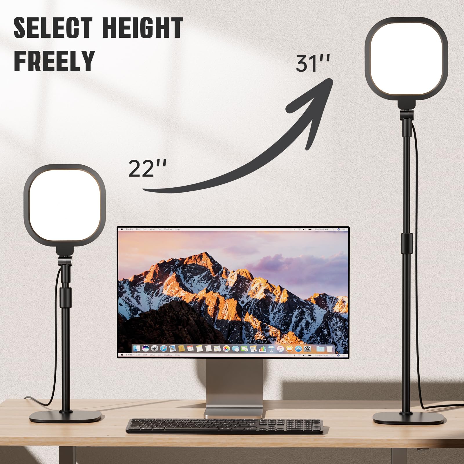 - TAILORED LIGHTING FOR YOU: LitONES desk ring light is packed with an upgraded, telescoping height adjustment bracket that ranges from 22 to 31 inches, tailor-made to light up your computer desktop like a pro. With a 360-degree rotating lamp head, you can effortlessly direct the light wherever you need it. Whether you're remote working, jumping on a Zoom call, recording a video, crafting, sewing, painting, or live streaming on social media, you'll always be in the perfect light with LitONES