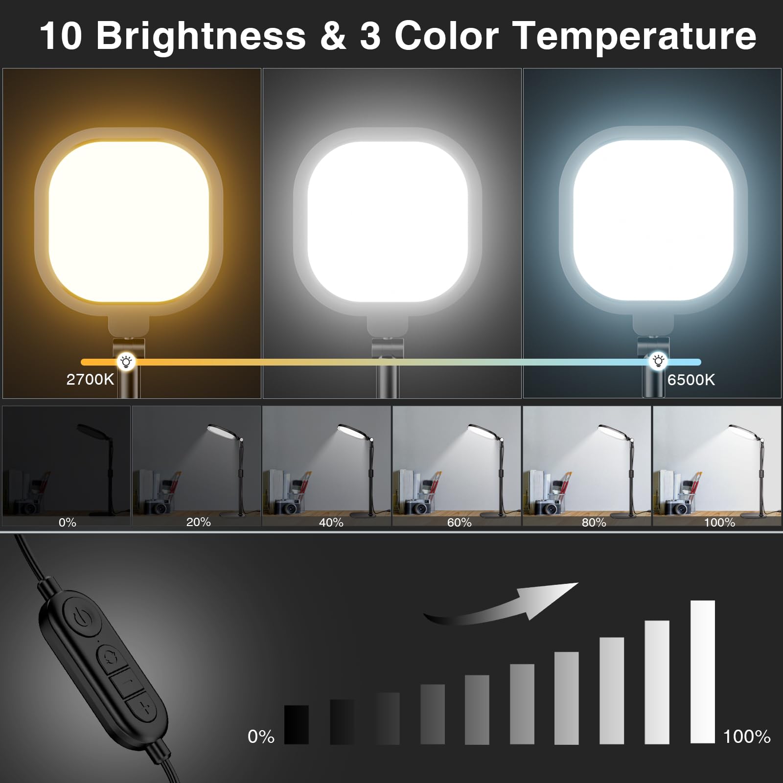 - 【EYE-CARING SOFT LIGHT 】LitONES Zoom meeting Light features edge-illuminated LED technology to provide natural soft light, even illumination that won't strain your eyes. Along with 3 color temperatures & 10 levels of adjustable brightness ,color temperature adajustable from 3000-6500K CRI>95 for perfect customized lighting.