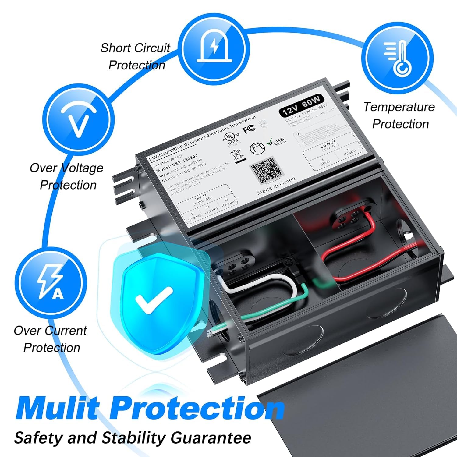 - 【Stable Performance & Advanced Safety Features】 - Enjoy flicker-free dimming and stable 12V output for consistent lighting performance. Built-in multi-protection mechanisms—including short circuit, over-voltage, over-current, and over-temperature protection (100℃±10℃, auto-shutdown when overheated, and auto-recovery)—ensure safe and reliable operation in any environment.