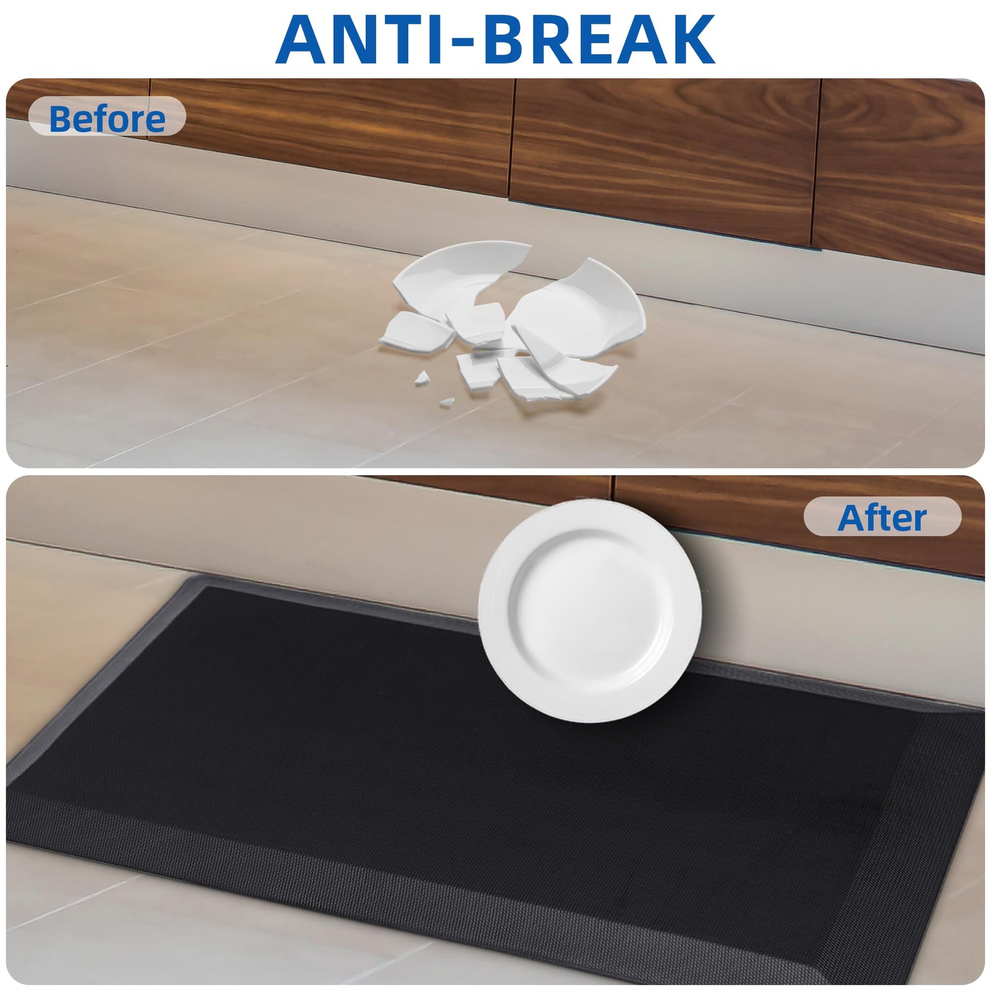 - 【Non-Slip & Anti-Break】The padded memory foam kitchen mat for the floor has a non-slip bottom design to prevent people from slipping or falling peace of mind, enhancing safety. The high-density 140D PU recycled foam can prevent the cup from falling and causing damage.