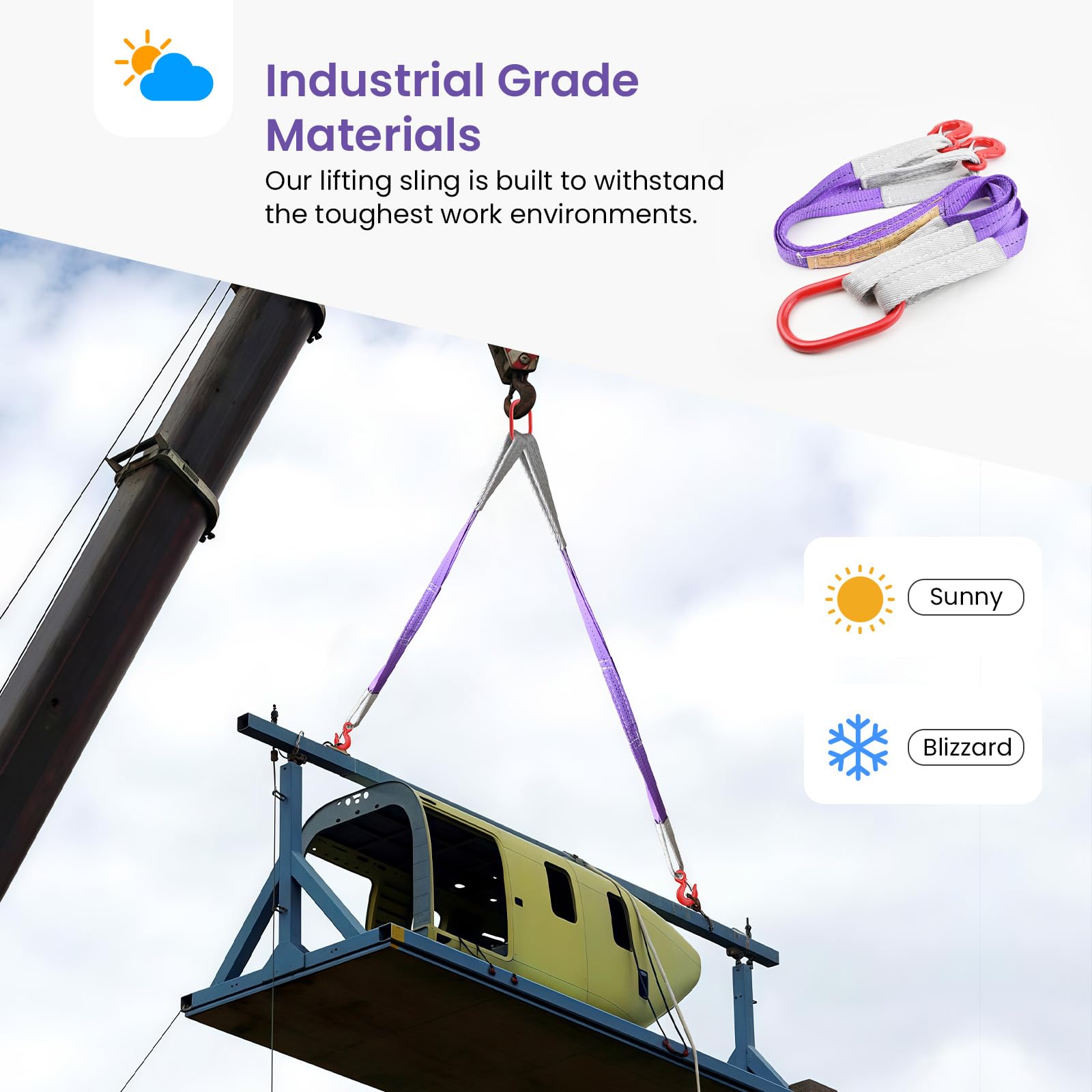 - Premium Quality Materials: Crafted with industrial grade polyester webbing sling and G80 steel hook, Our lifting sling is built to withstand the toughest work environments and ensure long-lasting performance and ensuring they won't deform or break easily