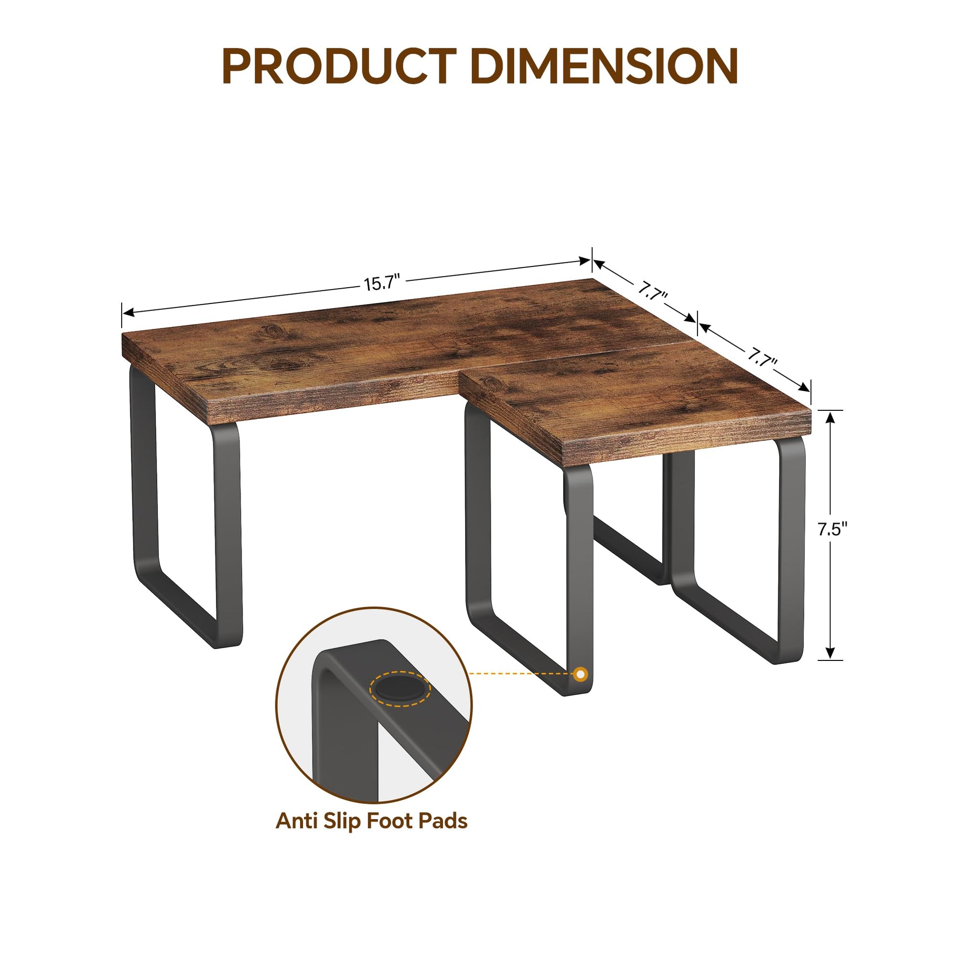 - 【Smart Dual-Tier Design】Includes one spacious 15.7"L shelf for appliances/books and one compact 7.7" square shelf for small items. Stack vertically or use separately to fit 7.5"+ tall items under each tier.