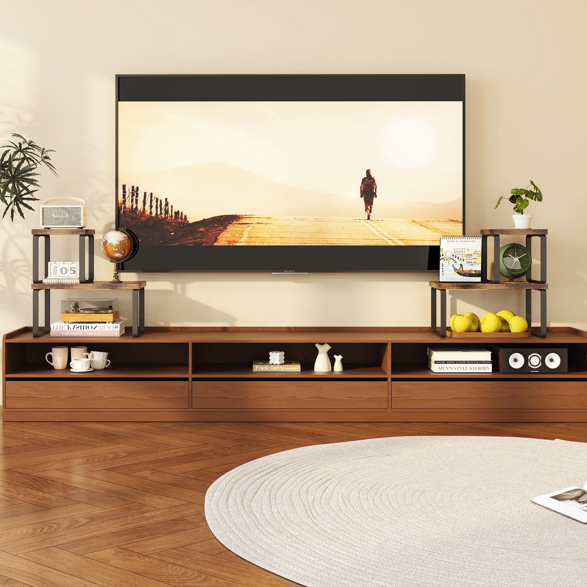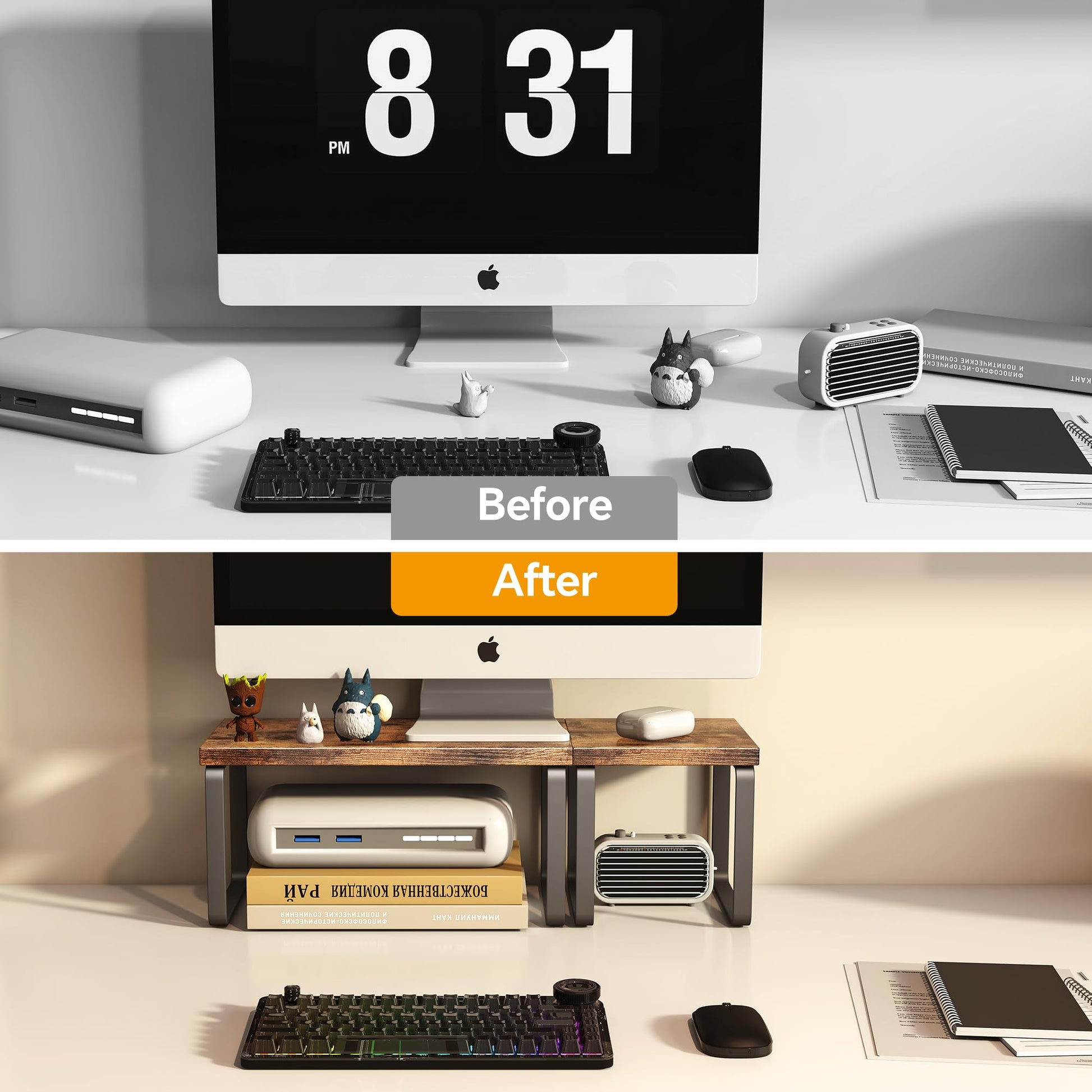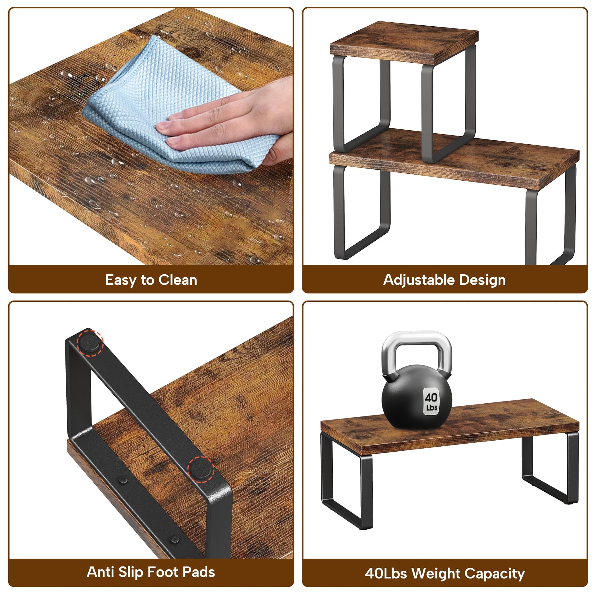 - 【Multi-Space Versatility】Works as: kitchen spice rack (fits 12 standard jars), office monitor stand (lifts screens 7.5"), bathroom organizer, or dorm