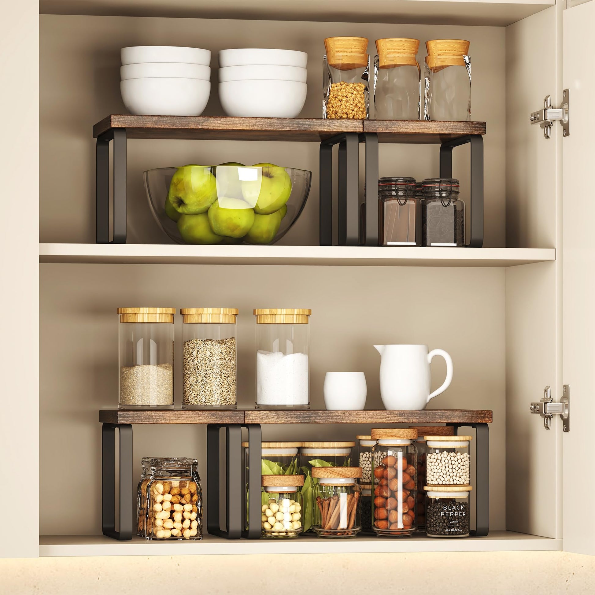 - 【Premium Material Combo】Features solid wood shelves with metal legs. Holds 40lbs per tier.