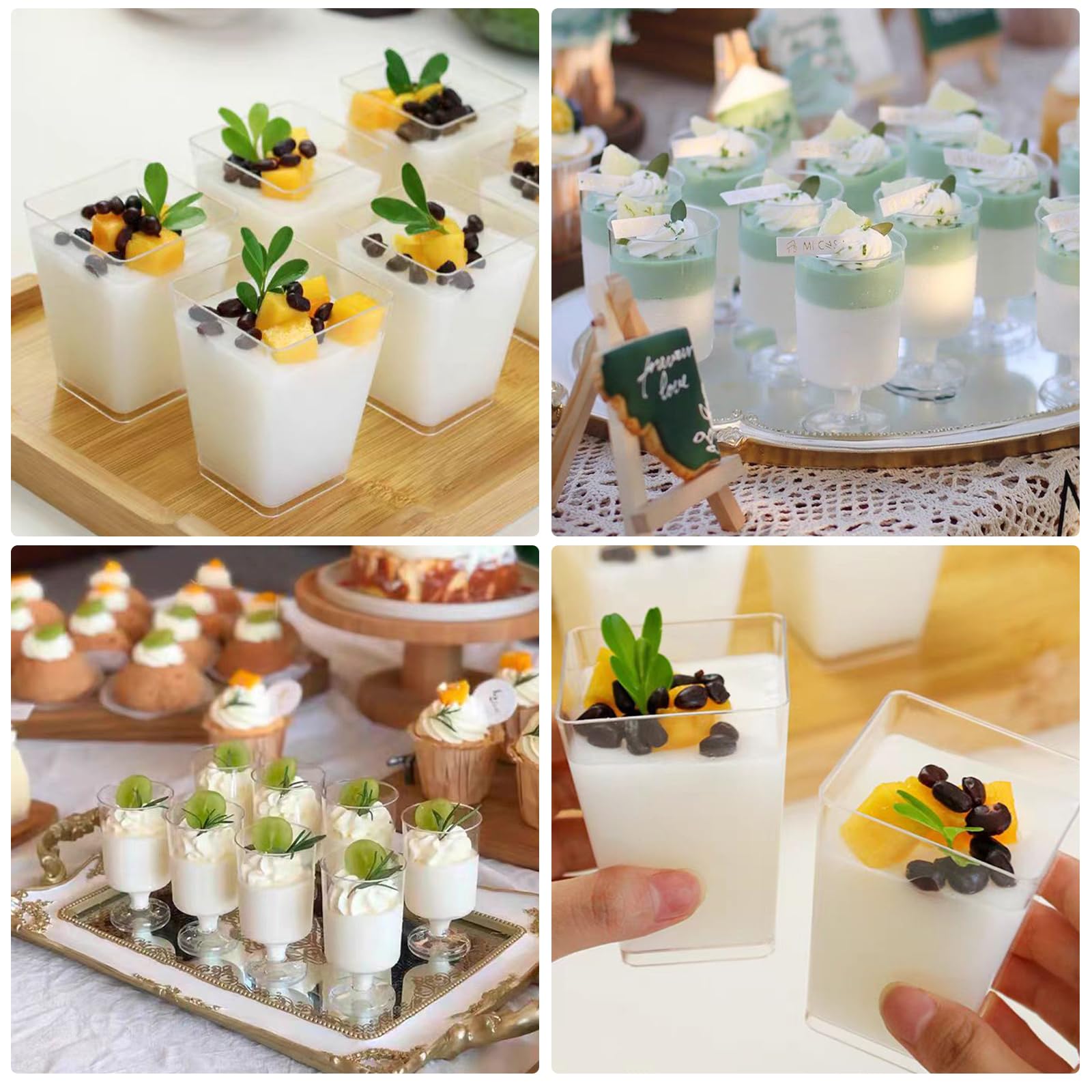 - 【Superior Material】Our appetizer cups with spoons are made of quality plastic, which is sturdy and reusable crystal clear plastic, not easy to scratch, break and deform. So these mini trifle dessert cups are perfect for any parties