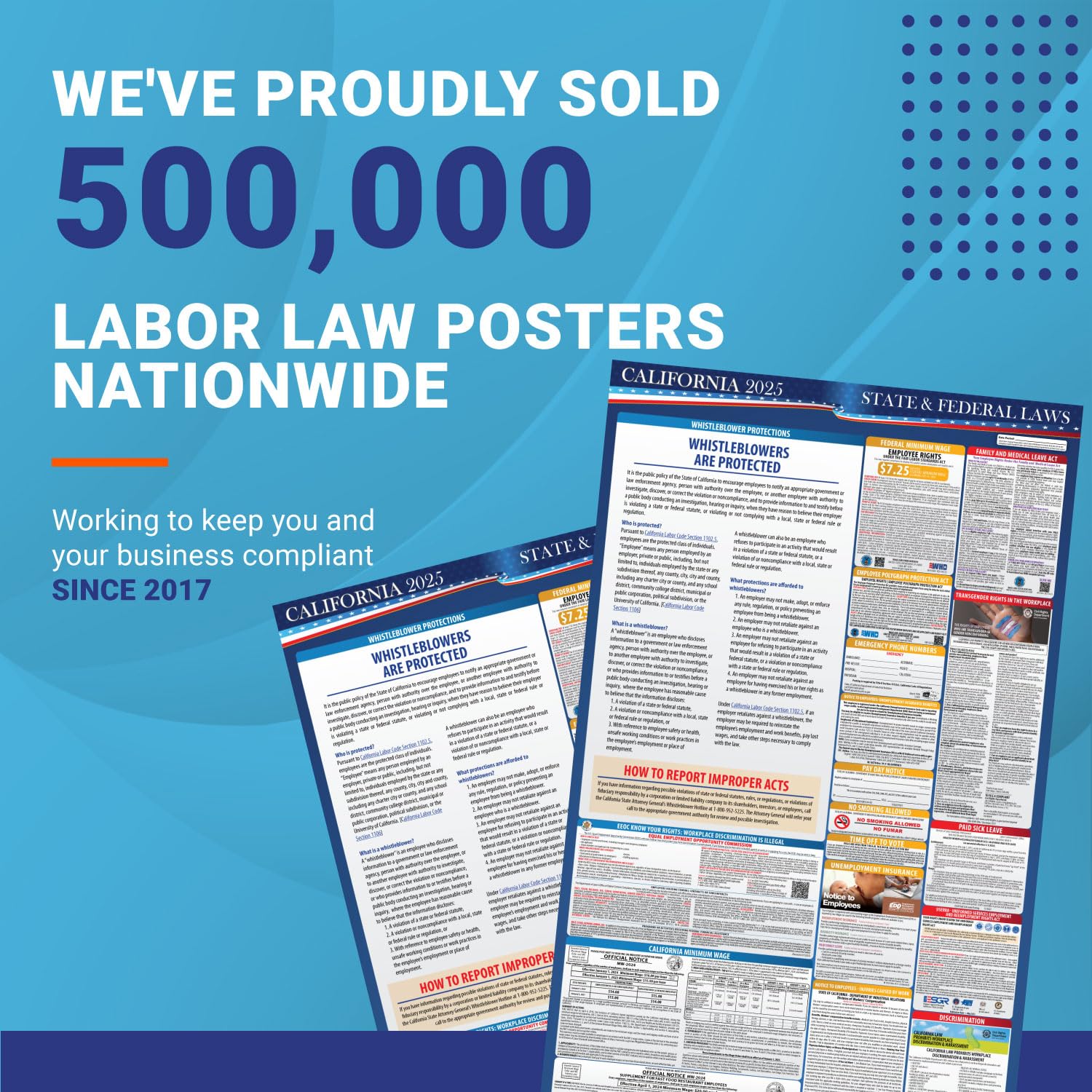 - ✓ 2025 Compliance Solution: Stay updated with the latest California State, Federal, and OSHA required labor law postings using this all-in-one 16" x 40" poster, designed to meet all required labor law standards.