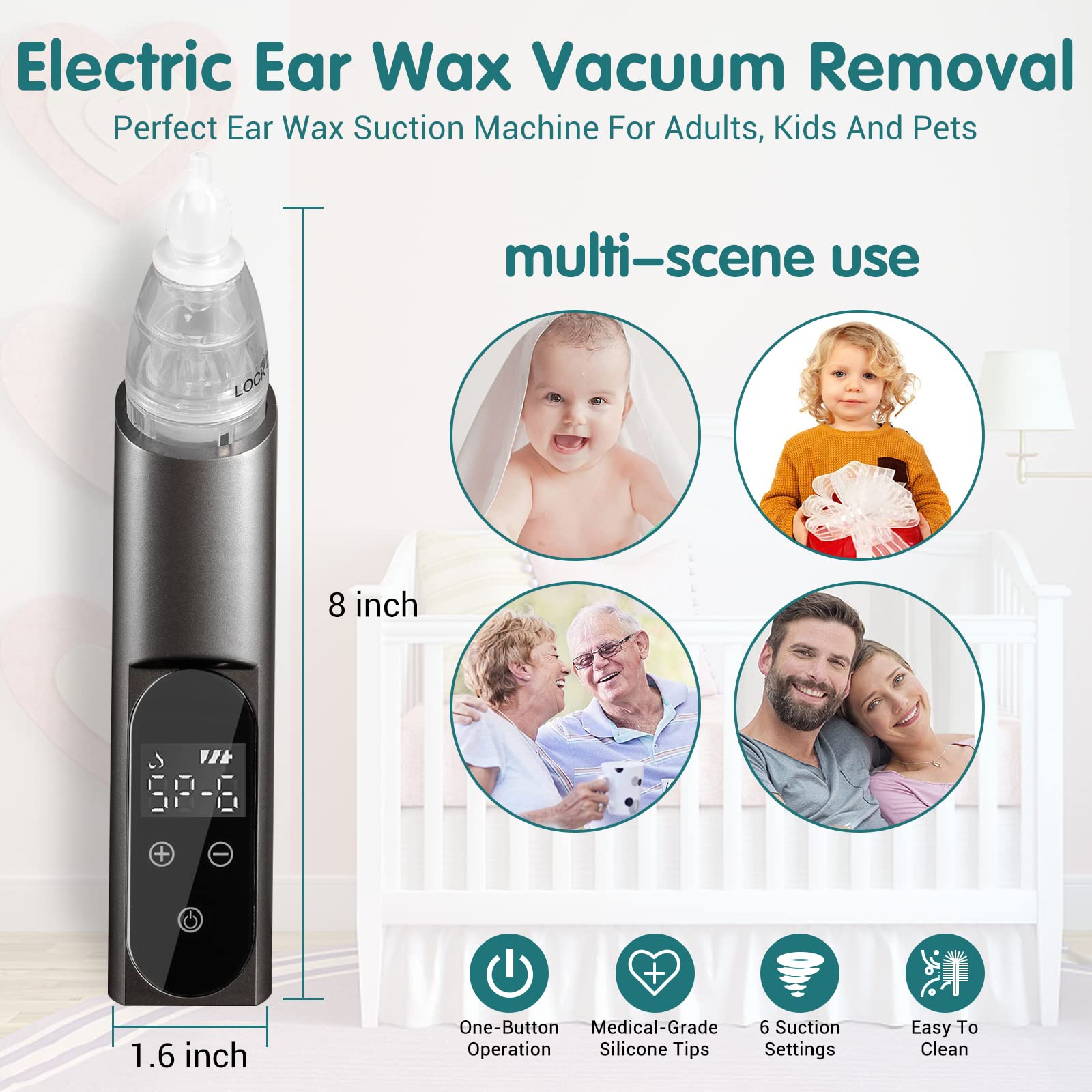- 【Upgraded 6 Levels Suction Ear Cleaner】--The Ear Vacuum Wax Removal Kit has 6 levels of suction from weak to strong with just the press of one button, you can choose a suitable level according to your personal situation, no need to worry about suction is too strong or weak. It's cheaper than an ENT visit. This new style of ear wax removal tool can suck away the earwax or ear water effectively. Protect your ears from the harm of hard ear spoons or cotton swabs.