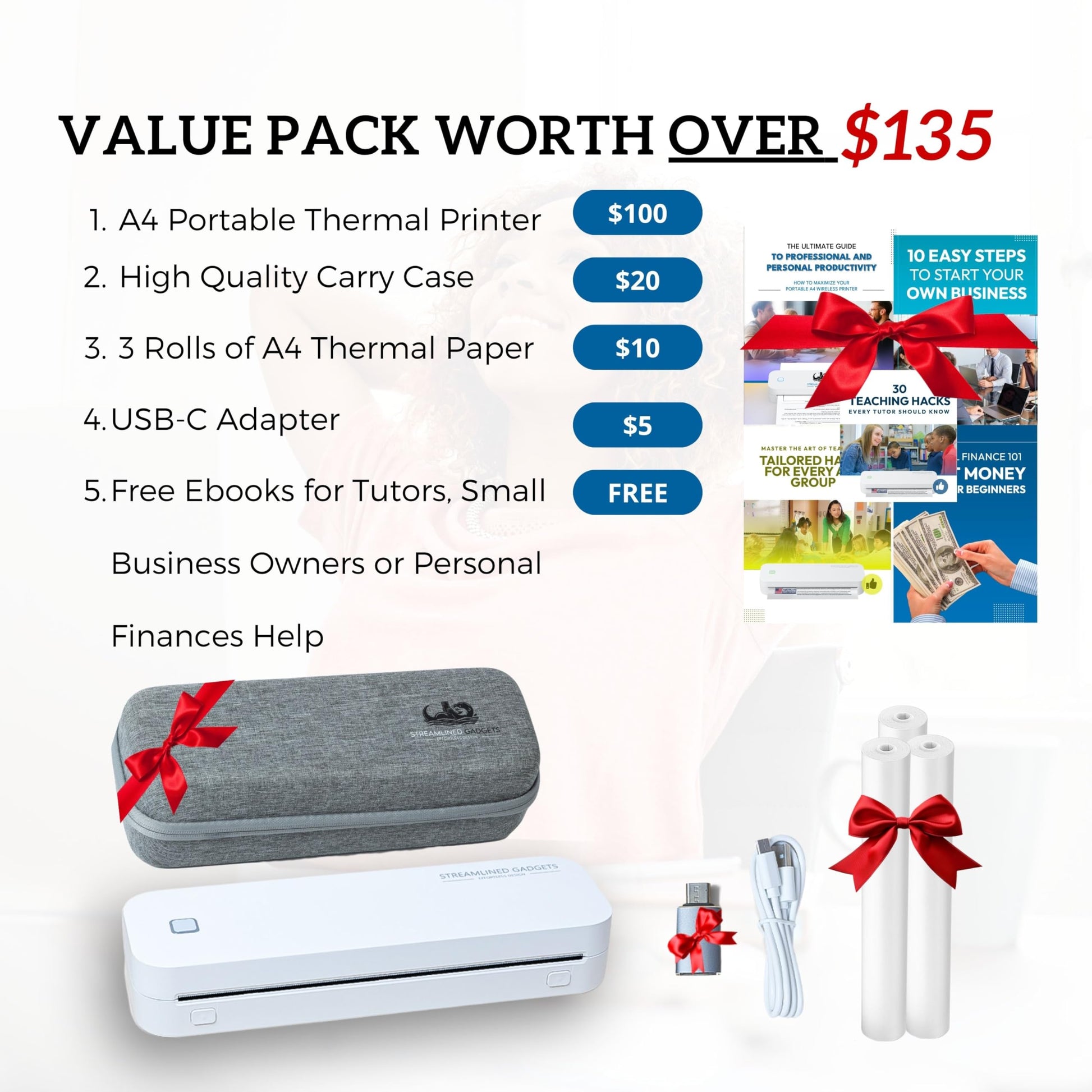 - ->No More Expensive Ink : Save money and hassle with ink-free thermal printing. Say goodbye to costly ink cartridges and toners. Your purchase includes 3 free rolls of A4 thermal paper, so you’re ready to print and save from day one—enjoy all the benefits of an ink-free printing solution.