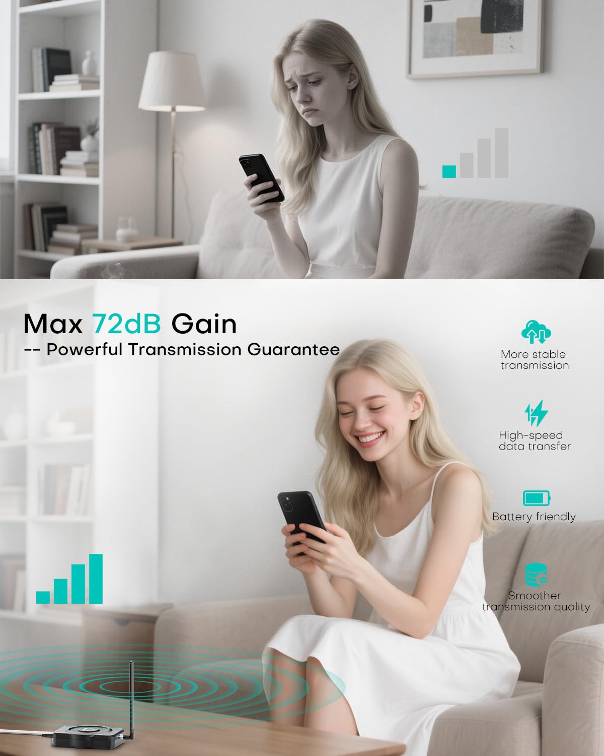 2025 Latest Cell Phone Booster for All U.S. Carriers, Boosts 5G 4G LTE 3G, Cell Phone Signal Booster for Home and Office, 72dB High Gain Antennas, Verizon, AT&T, T-Mobile, App Support FCC Approved
