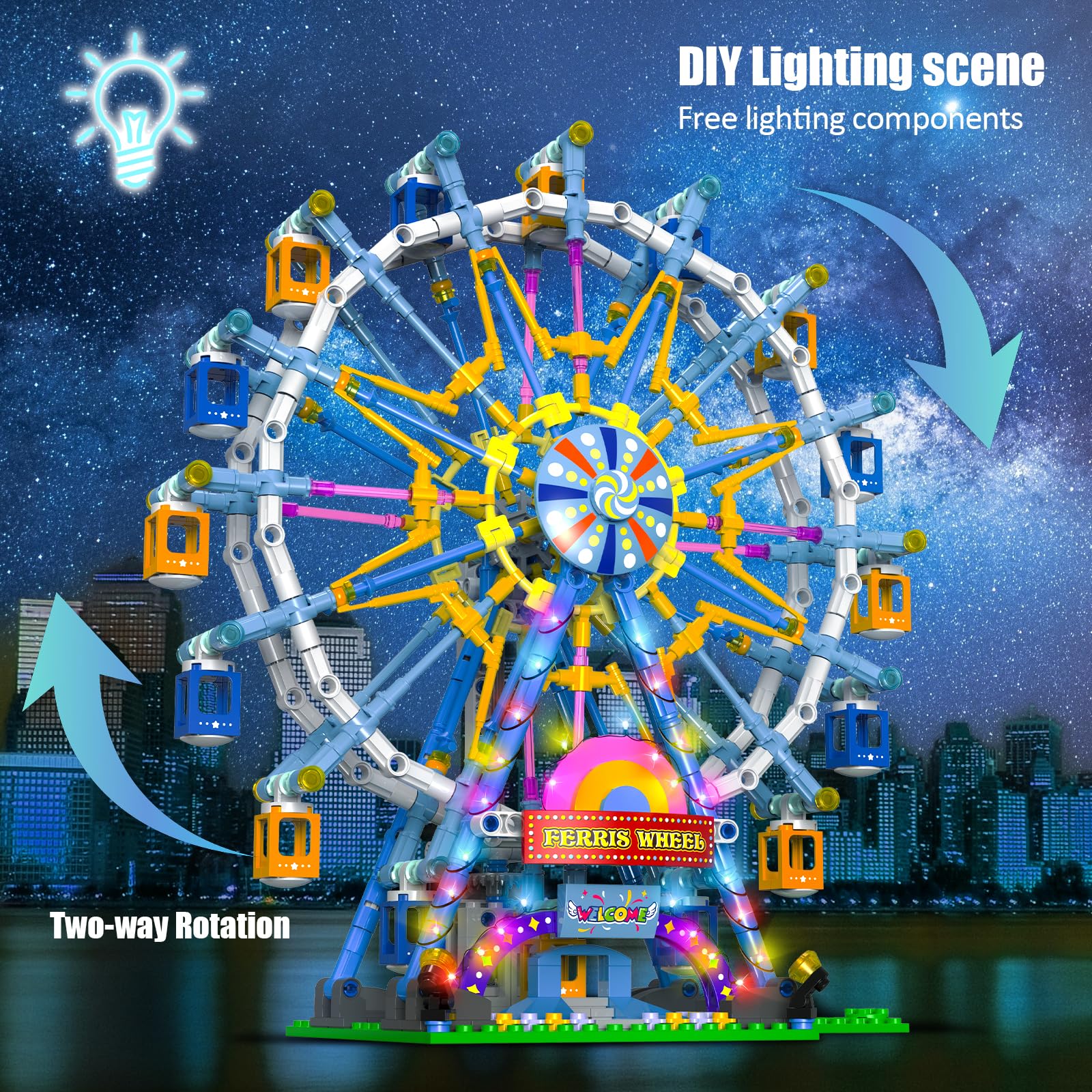 2025 Newly Upgrade Ferris Wheel Building Set with Fairy Light, Two-Way Rotating Ferris Wheel Building Blocks Set of 813 PCS, Amusement Park Model Kit for Kids Ages 8+, Ideas Gift for Boys and Girls