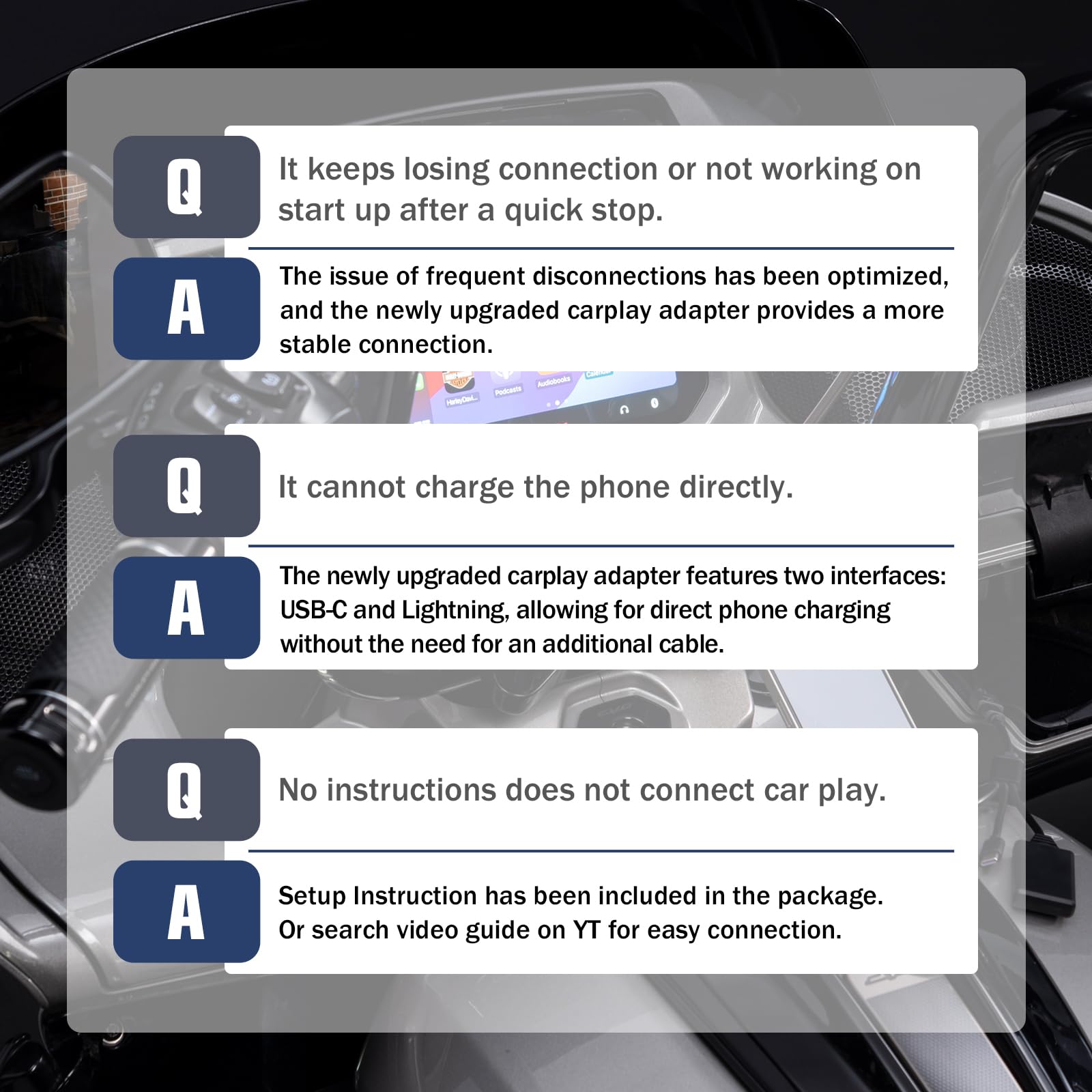 - Professional Service: Connection instructions are provided. Just rest assured and enjoy a high-quality wireless CarPlay adapter. We provides lifetime technical support and replacement. Fitting problem? Use issue? Please get in touch with us and we are ready to help you with any problem.