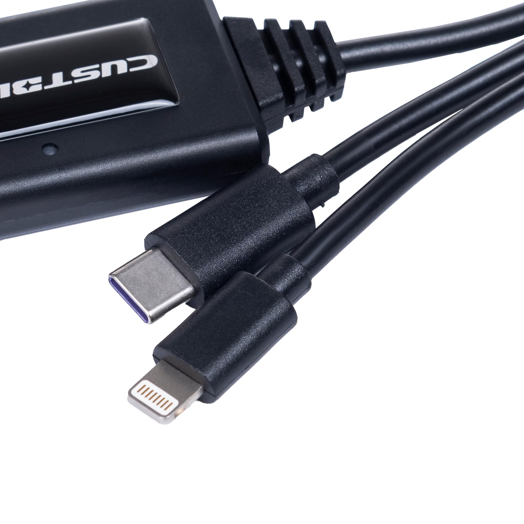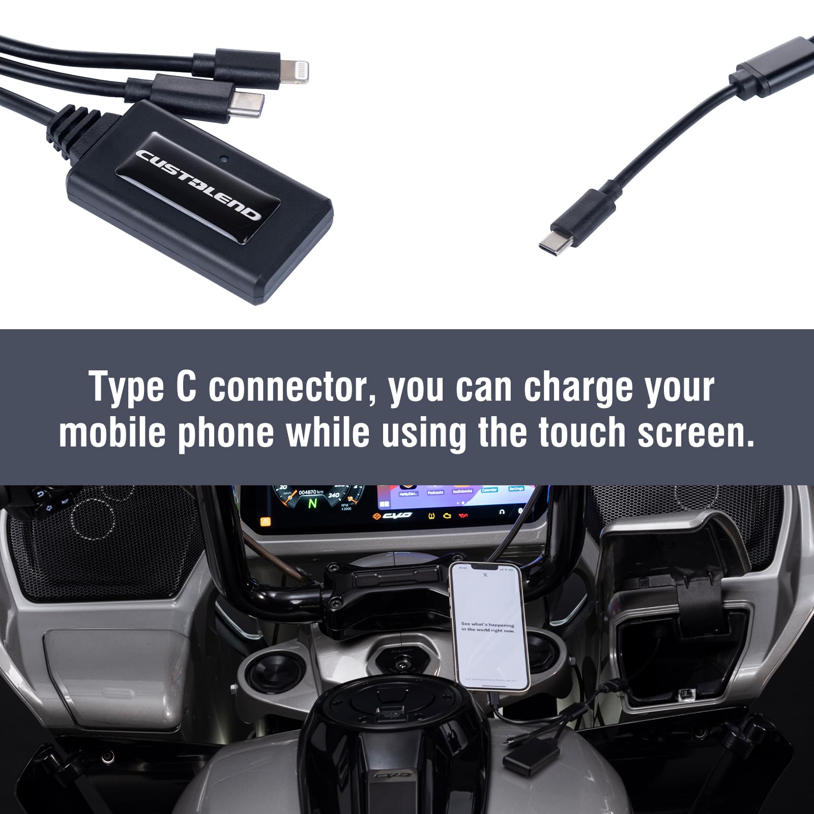 - Sleek and Compact Design: The lightweight sleek design of this wireless carplay adapter dongle make it compact and easy to carry around without taking up too much space in your front fairing box. Includes a Type-C connector and a Lightning charging port, enabling you to charge your phone while using the touchscreen.